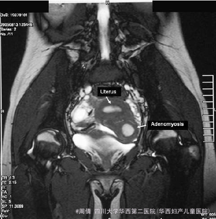 卵巢子宫内膜异位囊肿形态上以圆形、椭圆形多见。由于其具有强烈的穿孔、破裂及出血粘连特性,出血时间的先后不等,血液刺激产生反应性的纤维组织增生。超声可协助盆腔肿块定位,区分卵巢囊性、囊实相间或实质性肿块。卵巢子宫内膜异位囊肿的MRI信号可表现为多种信号变化,其信号因出血的新旧、液态或固态血,纤维组织等改变。 其实这个病人术前怀疑是双角子宫,没诊断出是子宫内膜异位,临床上要术前诊断EMT还是主要结合症状来的。