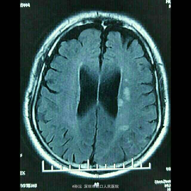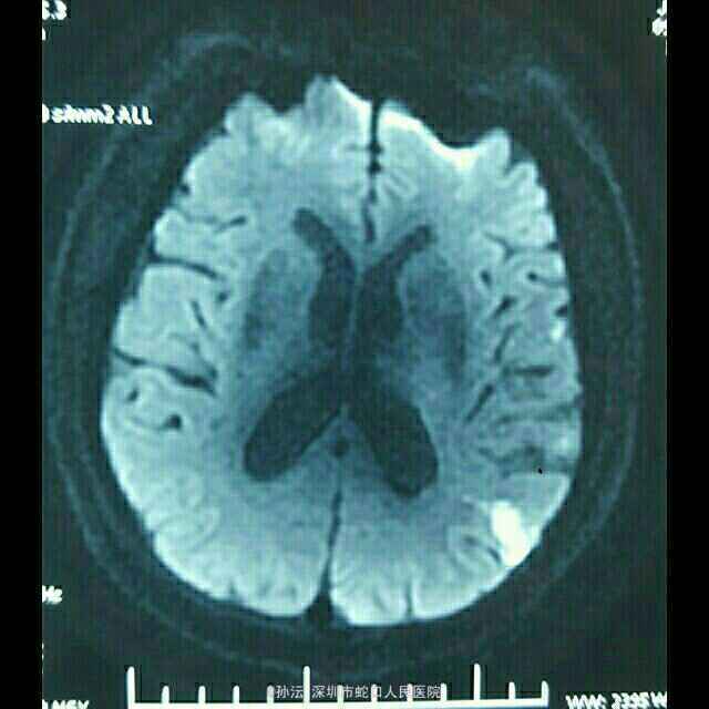 查体:BP 149/85mmHg,心肺听诊无异常。腹平软,无压痛、反跳痛,双下肢无水肿。神经系统检查:神志清楚,构音不清,记忆力、定向力、理解力、计算力均下降,两眼球活动自如,未见震颤,双瞳等大等圆,光反射灵敏,两侧额纹对称,右侧鼻唇沟浅,伸舌偏右,咽反射灵敏,颈软,四肢肌力5级,肌张力正常,腱反射对称,右侧病理征可疑阳性,共济征阴性,克氏征、布氏症阴性。NIHSS评分4分。 门诊头颅CT提示:脑萎缩。血液流变检测:全血粘度低切9.76mPa.s。糖化血红蛋白测定 HbA1c 6.60%。头颅MRI平扫(3.0T)示:左侧大脑分水岭区急性脑梗塞。脑小血管病变,FazekasⅡ级;轻度老年脑改变、部分空泡蝶鞍。