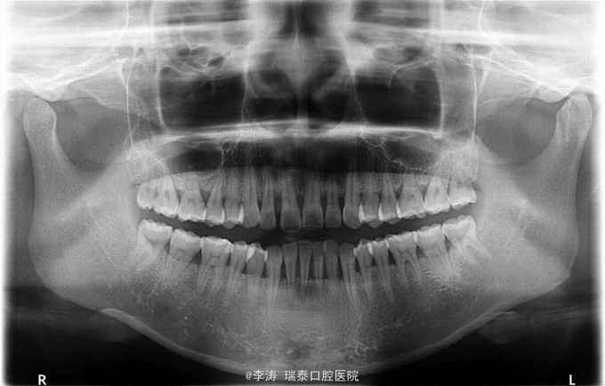 前牙间隙较大,全口牙龈红肿探诊出血,x线片,全口牙齿牙槽骨吸收至根中三分之一,牙周探诊示牙周袋深度均大于5mm