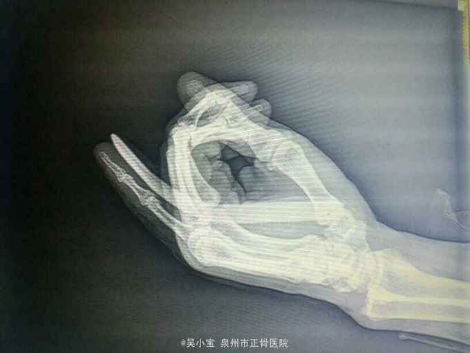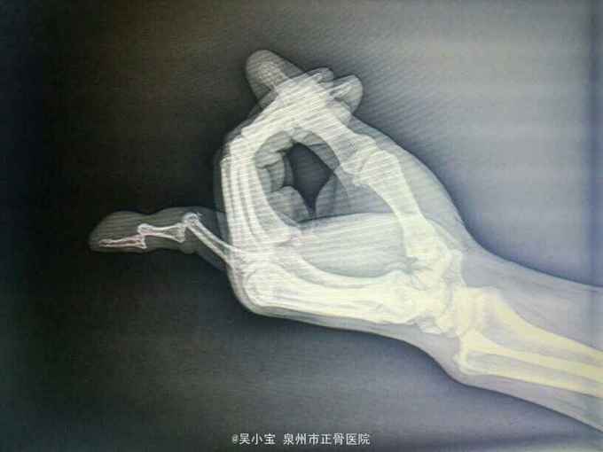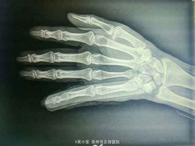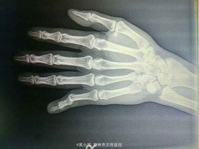 主诉:摔伤致右小指畸形肿痛1小时。 病史:患者自诉1小时前摔伤,伤后既感左第5手指部疼痛,伴畸形、活动受限,并见左第5手指部进行性肿胀,未见皮破出血及骨质外露,伤后急诊我院,神清,纳寐可,二便调。既往无特殊病史,未发现食物及药物过敏史。