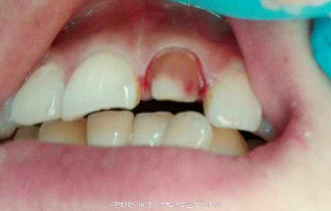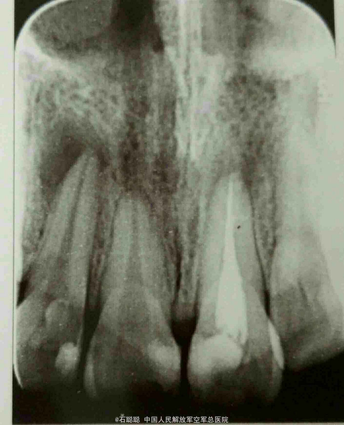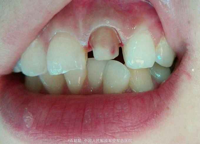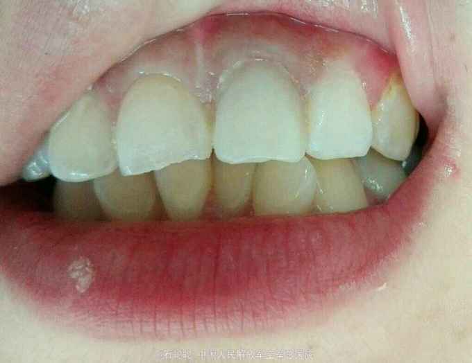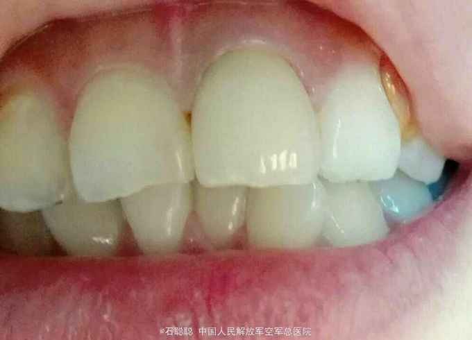主诉:上前牙变色两年,要求改善牙齿颜色 现病史:诉两年前上前牙“变黑”,一年前该牙齿突发咬合不适,于外院行“根管治疗”,后无明显不适,自觉影响美观,来我科就诊 既往史:否认高血压、心脏病、糖尿病史,否认药物过敏史