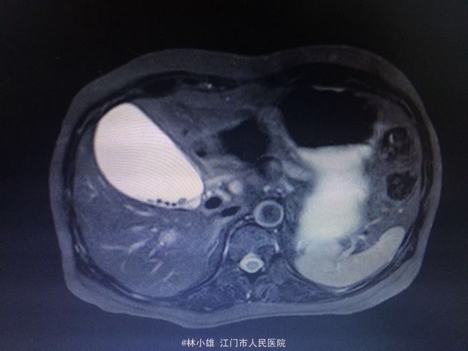 55岁女性,既往体健。 腹痛1次,腹胀1月,身目黄染20余天。 1月前突发腹痛1次,持续性胀痛,止痛治疗好转。次日出现腹胀、乏力,予胃药治疗2天无效后停药。20余天前出现身目黄染,尿黄,至当地医院查胆红素升高,以直胆为主,查腹部CT示胆囊结石,肝内外胆管无扩张,考虑毛细胆管炎,激素冲击3天、护肝退黄治疗无好转,遂入院。大便正常。