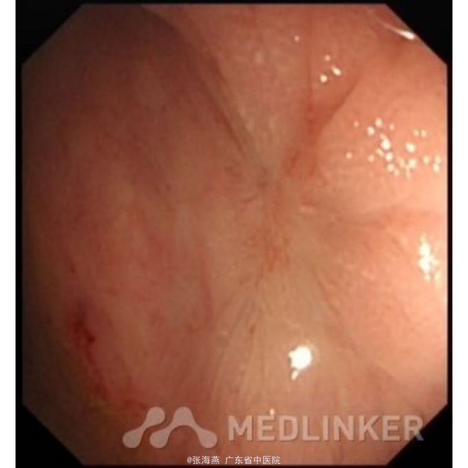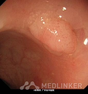患者,女,62岁 主诉:发现直肠肿物5日 现病史:患者2012年12月14日在我院行肠镜检查示:直肠侧向发育型肿物(LST)(直肠距肛周6cm处后壁可见一广基侧向发育型肿物,大小约1cm×1.2cm,基底呈鱼鳞样改变)。既往排便规律,大便1次/日,色黄,质软成形,无粘液脓血,无腹胀腹痛,无便秘腹泻,现为求进一步系统治疗,由门诊拟“直肠肿物”收入我科。 入院症见:神清,精神可,大便1次/日,色黄,量中,质软成形,无粘液脓血,无腹痛腹胀,无便秘腹泻,无嗳气反酸,无发热恶寒,纳眠可,小便调。 既往史:慢性胃炎,2型糖尿病。