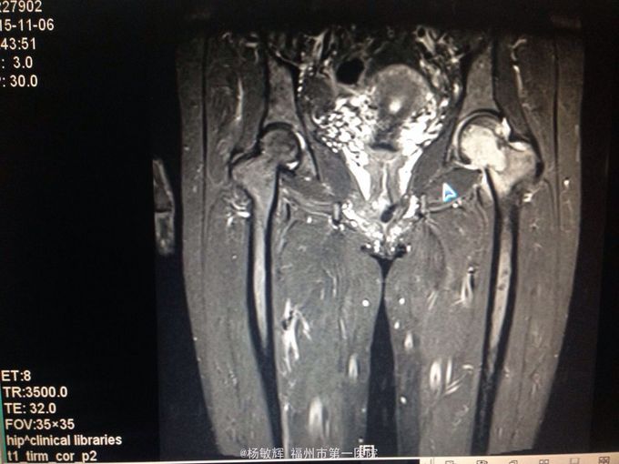 女性,48岁,以“左髋部疼痛伴活动受限2年”为主诉入院。缘于入院前2年无明显诱因出现左髋部疼痛不适,疼痛呈间歇刺痛,无向他处放射,伴左髋部活动受限,间歇性跛行,就诊当地医院查髋部X线提示:骨质破坏。MRI提示:左股骨头异常信号。当地医院诊断股骨头占位,未予以特殊处理,2周前疼痛加剧,就诊我院,查左髋部MRI提示:左髋部占位,骨巨细胞瘤可能性大。入院后于穿刺活检送病理,病理结果:左股骨头骨巨细胞瘤。拟:左股骨近段骨巨细胞瘤,收住院。