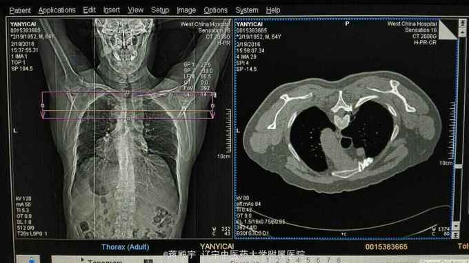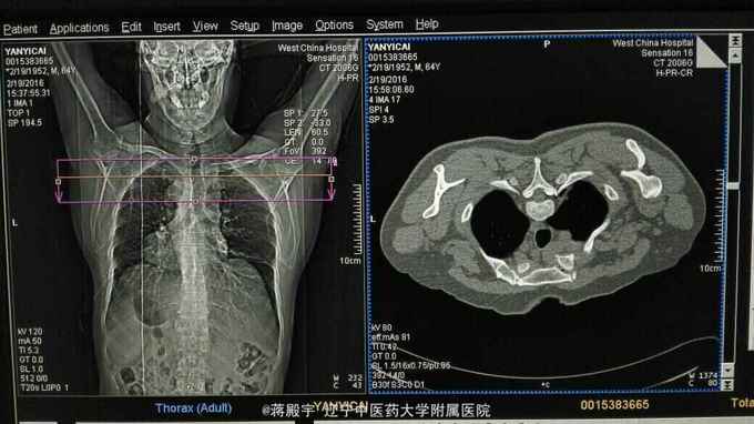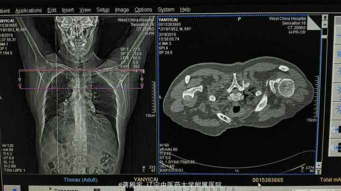 患者以右侧胸背部疼痛1年为主诉入院。一年前出现右侧胸背部疼痛,向前胸放射,呈刀割样,持续性,伴红色皮疹无水疱。穿衣服及轻触可诱发疼痛。开始口服曲马多及卡马西平,后改为泰勒宁及派汀。疼痛逐渐加重,入院治疗。