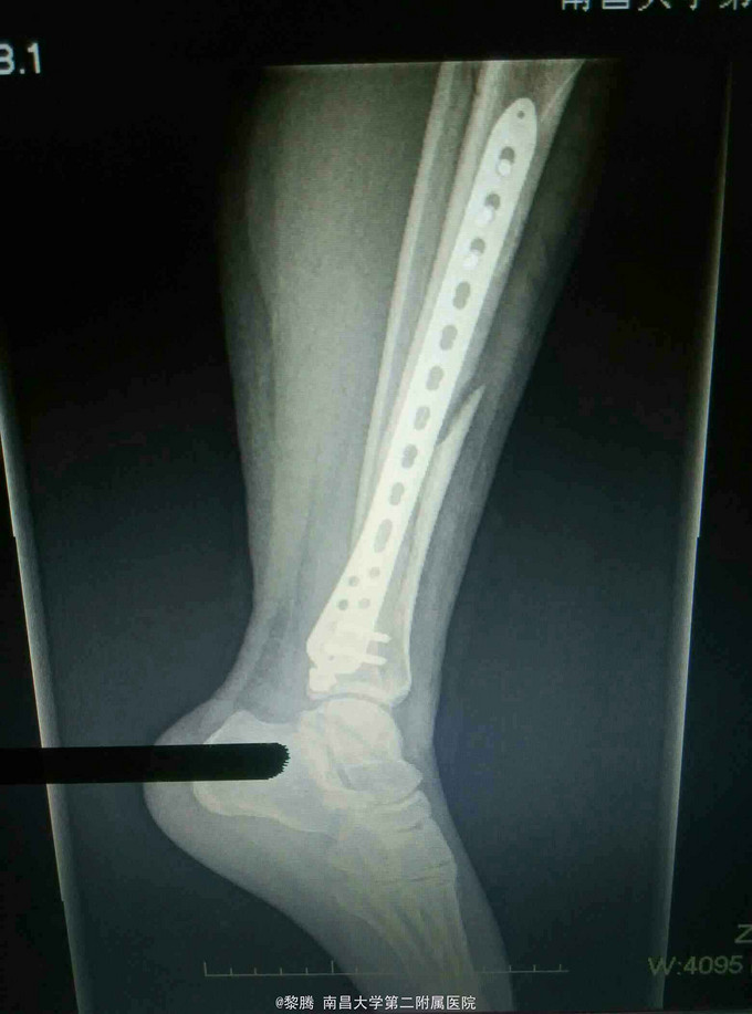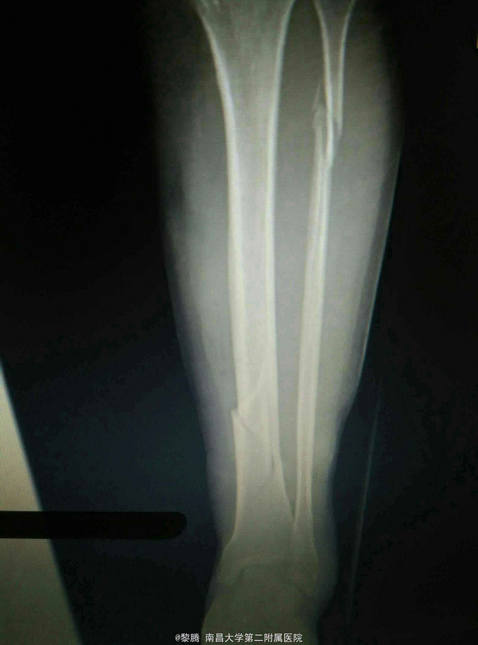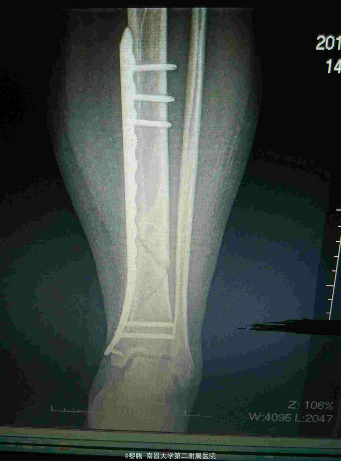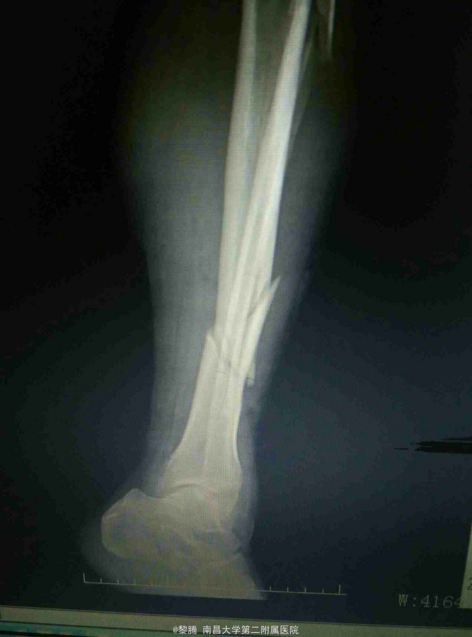 诊断:左胫腓骨骨折 治疗:胫骨骨折复位内固定