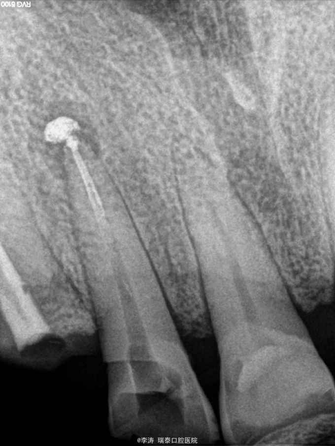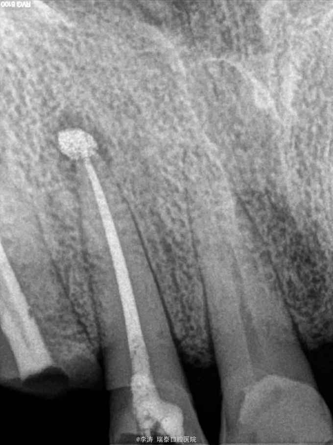 1,术前病史和详细检查很重要,要是病人直接选择根尖切除术,我可能真的是百口莫辩。但这种情况真的是防不胜防,只能自求多福吧 2,超充的vita糊剂很难去除,可能做了再治疗后还是得采取根尖手术,不知道大家对去除超充糊剂有什么建议 3,充vita糊剂半年就发生了炎症,这也是我不太明白的,可能是根管预备消毒没做好,也可能是vita糊剂的效果还有待观察。
