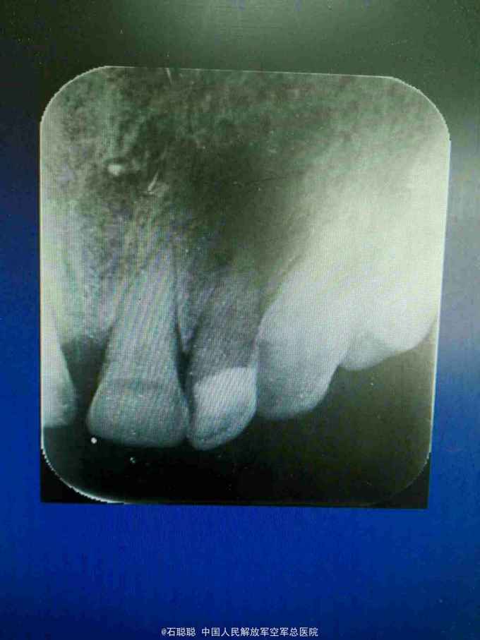 讨论:由于患者1年前接受了不恰当的充填治疗,导致左上2的根尖病变,引起完整病变的急性发作,引起相应部位牙龈肿胀,鼻翼旁的疼痛,治疗原则是开髓、充分引流,全身抗炎治疗,由于没有形成有明显波动感的脓肿,不建议切开引流,配合口服抗生素,炎症消退较快,继续完成后续根管治疗即可,可以在根管预备完成后,封Vitapex一个月,促进根尖区病变愈合,再完成永久充填。