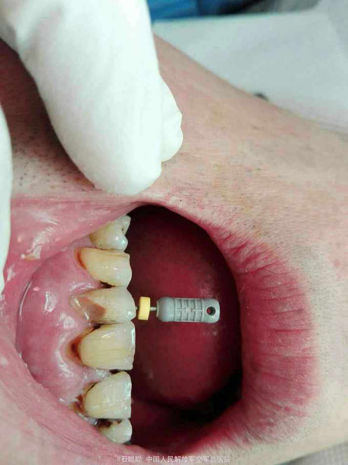 诊断:左上2根尖周脓肿 治疗计划:开髓引流,消炎镇痛,后期根管治疗 处置:左上2去旧充填物,见树脂充填物进去髓腔,探及根管口,疏通,见大量脓性,血性液体渗出,开放,口服头孢、甲硝唑 次日复诊: 诉肿胀疼痛减轻 查:左上234唇侧牙龈肿胀减轻,扪诊疼痛减轻,左上2松动度减轻 处:进一步疏通扩大至25#,见混浊血性渗出,继续开放 次日复诊:左上234唇侧牙龈肿胀消退,叩痛消失,松动度明显减小,冲洗,干燥,封CP棉球,告知患者一周后复诊,继续完成治疗