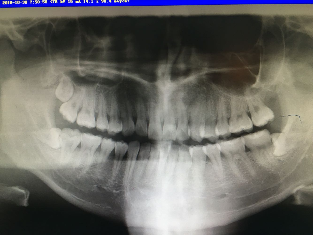 诊断:38,48阻生。 治疗:48牙齿局麻下拔除