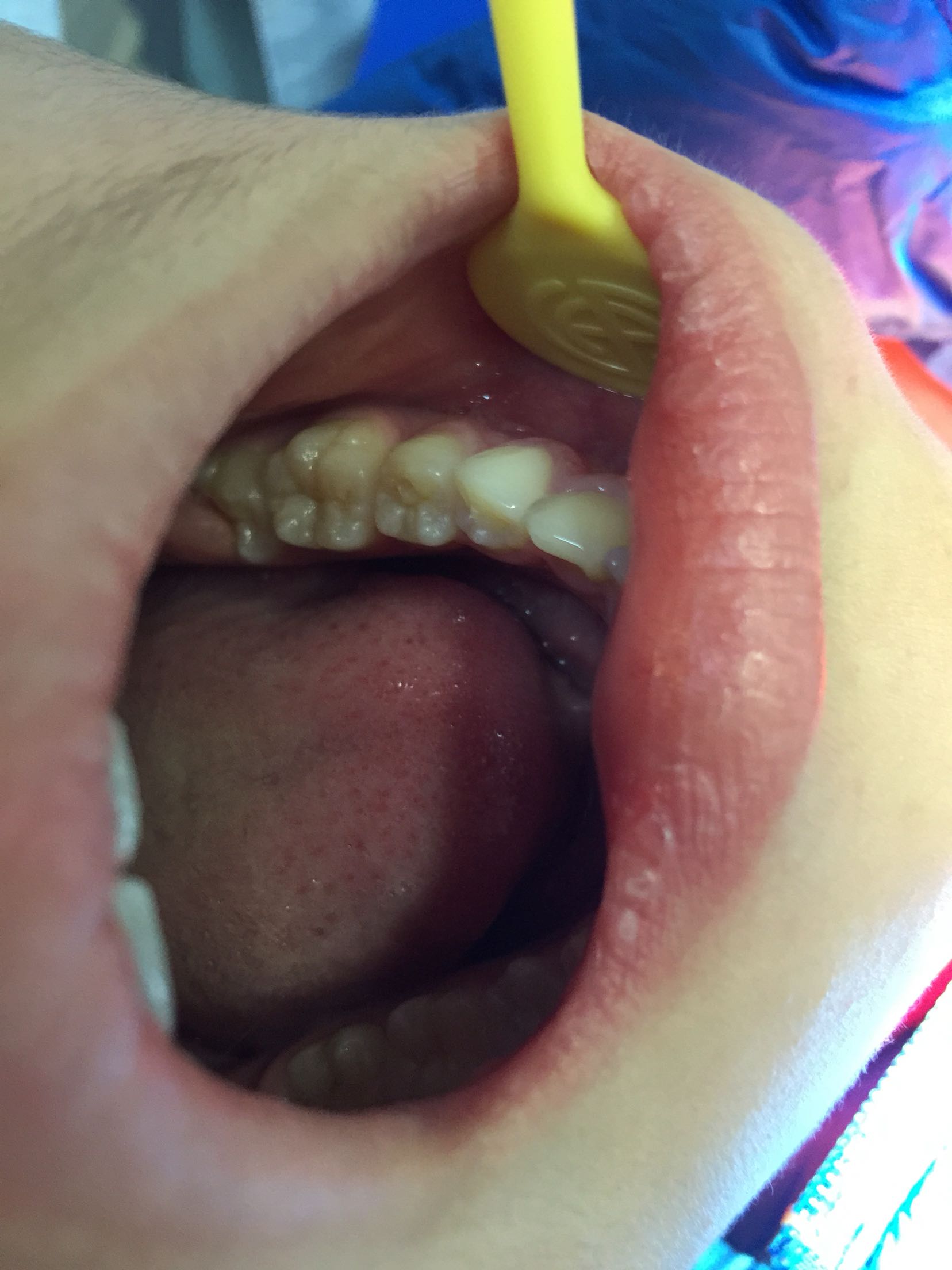 主诉:左下后牙疼痛三天。 病史:近三天患儿因左下后牙疼痛明显,无法咬物,家长带来就诊。