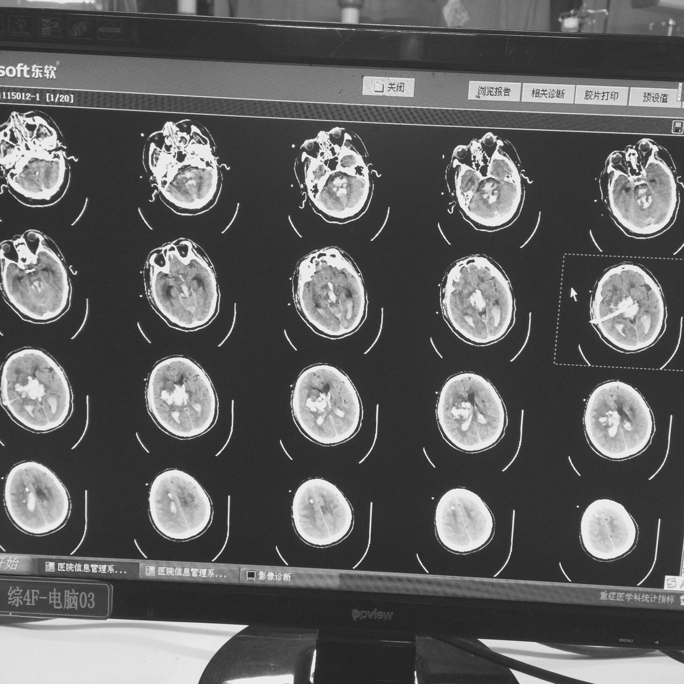 主诉:患者主因突发意识不清约4.5小时入院。 现病史:患者缘于约4.5小时前在厕所中被家人发现意识不清,肢体抽搐,无恶心、呕吐,无大便失禁、呼吸困难等,在当地未治疗,来我院,急诊查头颅CT示:右侧丘脑出血破入脑室。收入院。 既往史:高血压病史10余年,血压控制欠佳。