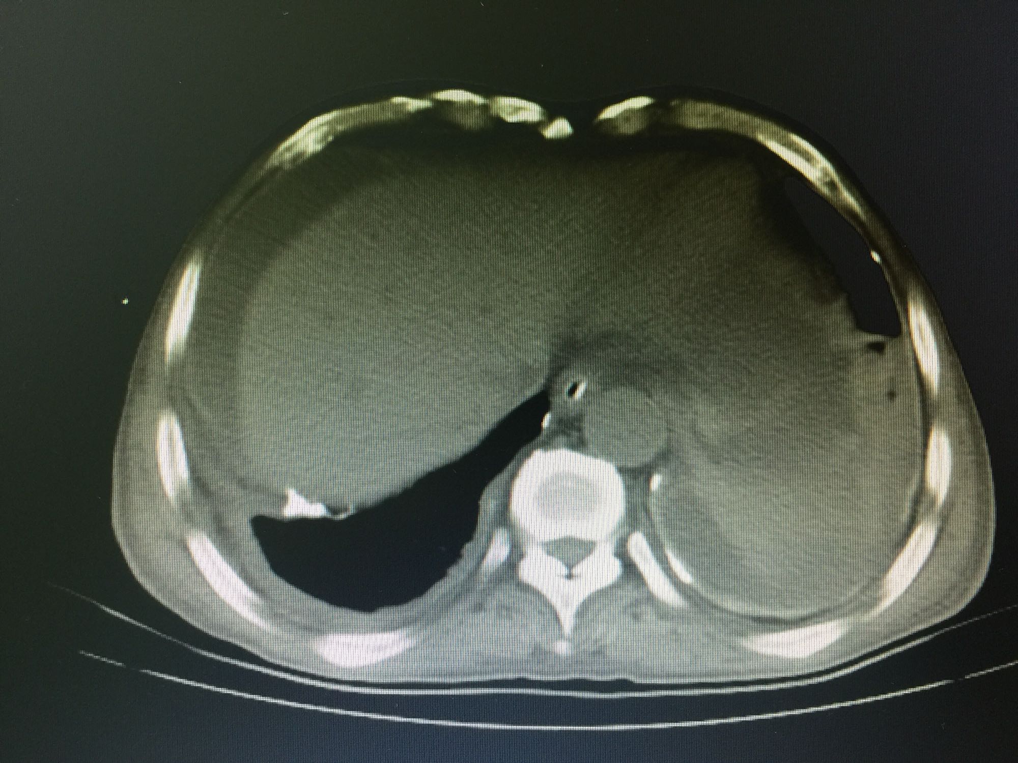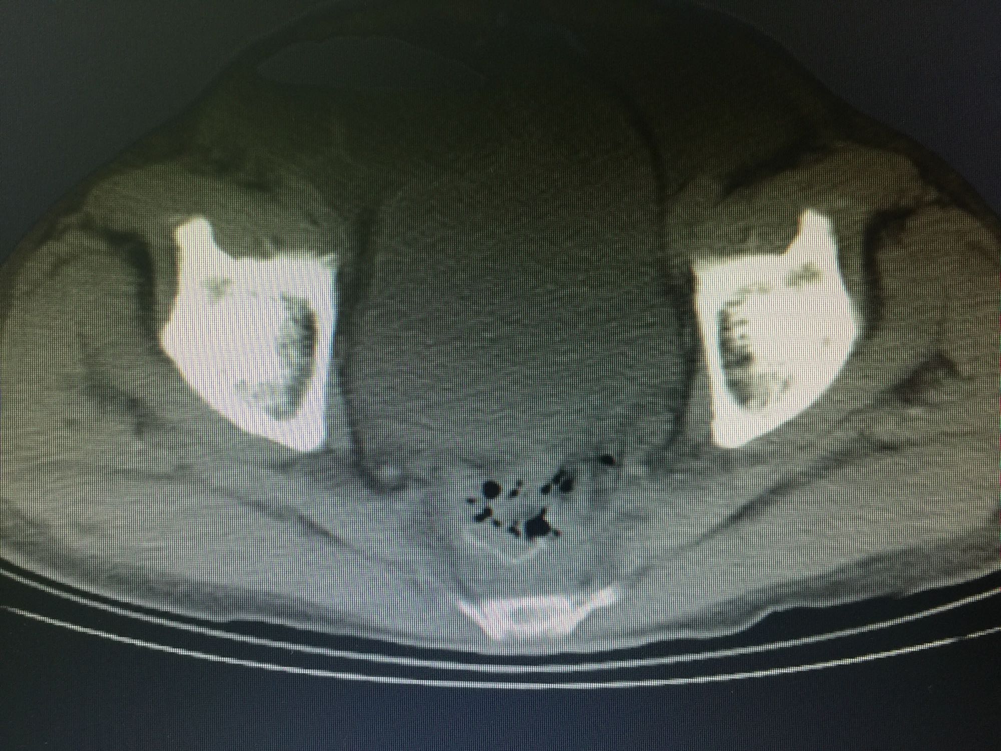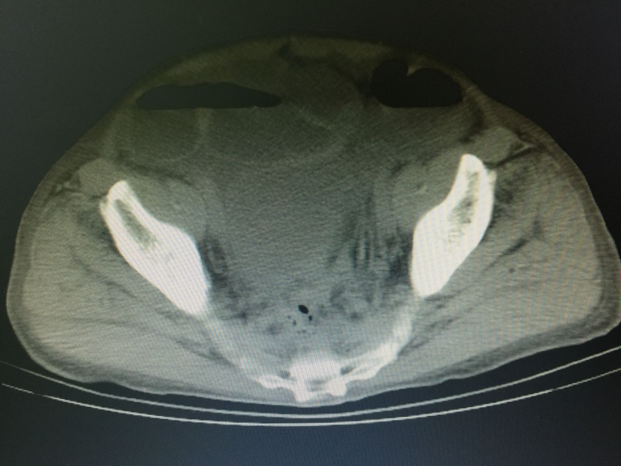 诊断:直肠癌,结肠息肉。 治疗:直肠低位前切除术,术后7天盆腔引流量逐渐增多,伴腹痛、发热,血像明显增高,腹部CT见腹腔大量积液,吻合口处结构不清晰,直肠旁间隙见条索状增强影;再次手术证实为吻合口漏。