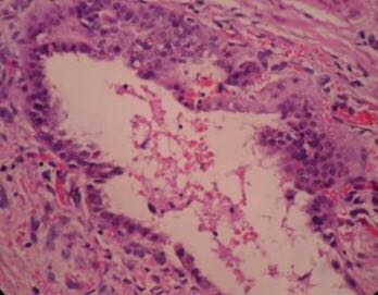 诊断:会阴肿物(子宫内膜异位症?) 治疗:阴式会阴子宫内膜异位症病灶切除术。术中见会阴体左侧(相当于外阴4点-5点处),可及约3X3厘米大小质韧肿物,界限不清,肿物已经侵入肛提肌及肛门括约肌。术中剖检所切除肿物见其中紫蓝色出血病灶,边缘一圈正常组织,证实肿物切除完全,冰冻病理回为子宫内膜异位症。