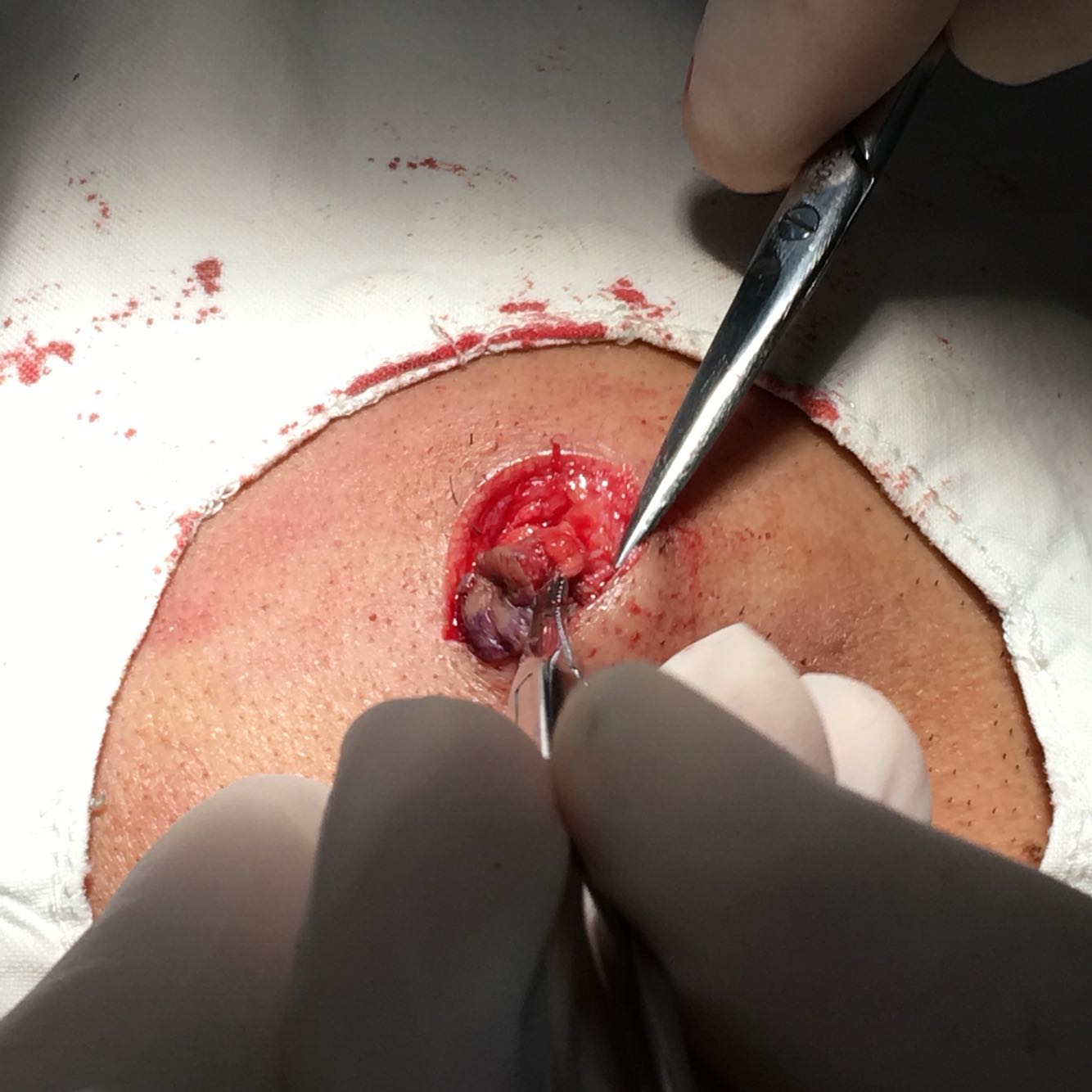 血常规及凝血检查无异常,签手术知情同意书。 常规麻醉行面部右侧皮脂腺囊肿摘除术,完整切除囊肿,分层对位严密缝合。建议病变组织送检。
