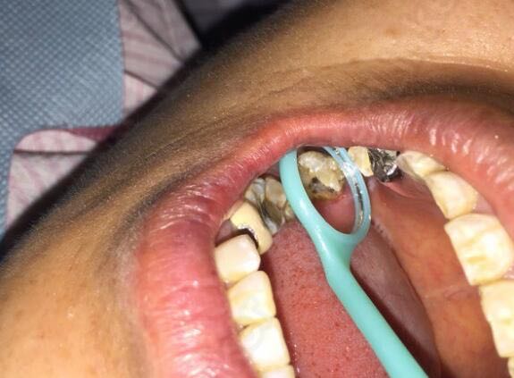 右上后牙疼痛一月余 一月前发现舌侧有洞,出现疼痛,来诊