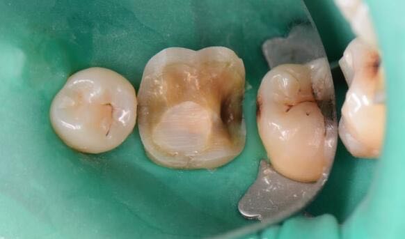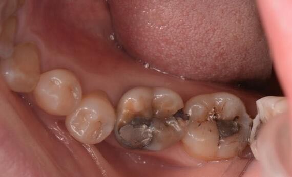 患者女性,自诉左下后牙咀嚼不适一个多月,食物嵌塞,来诊求治