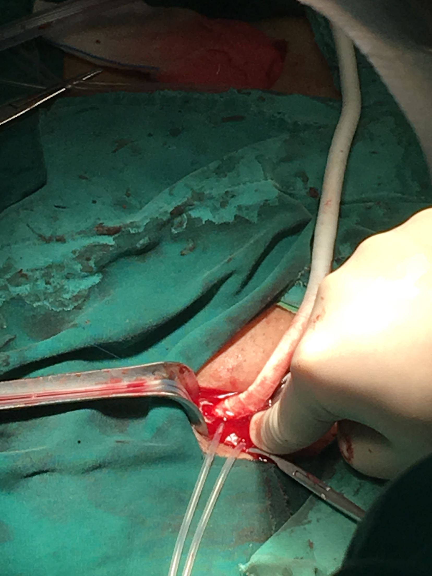 该患者介入手术后右髂外动脉血流改善,但左侧介入手术未能再通,通过股股人工血管搭桥手术,双下肢的动脉血供得到明显改善。