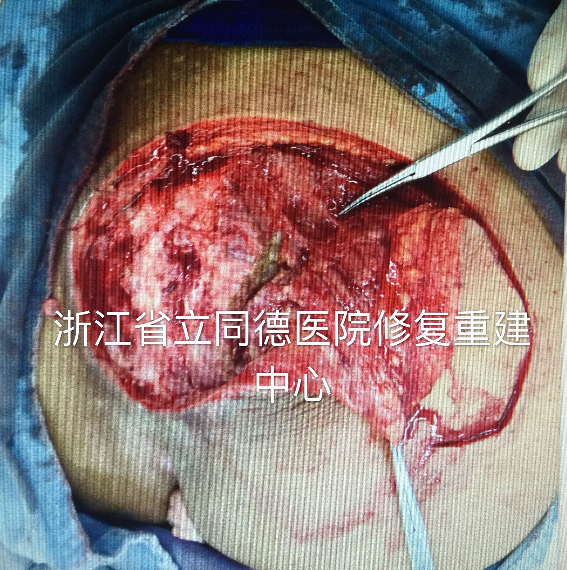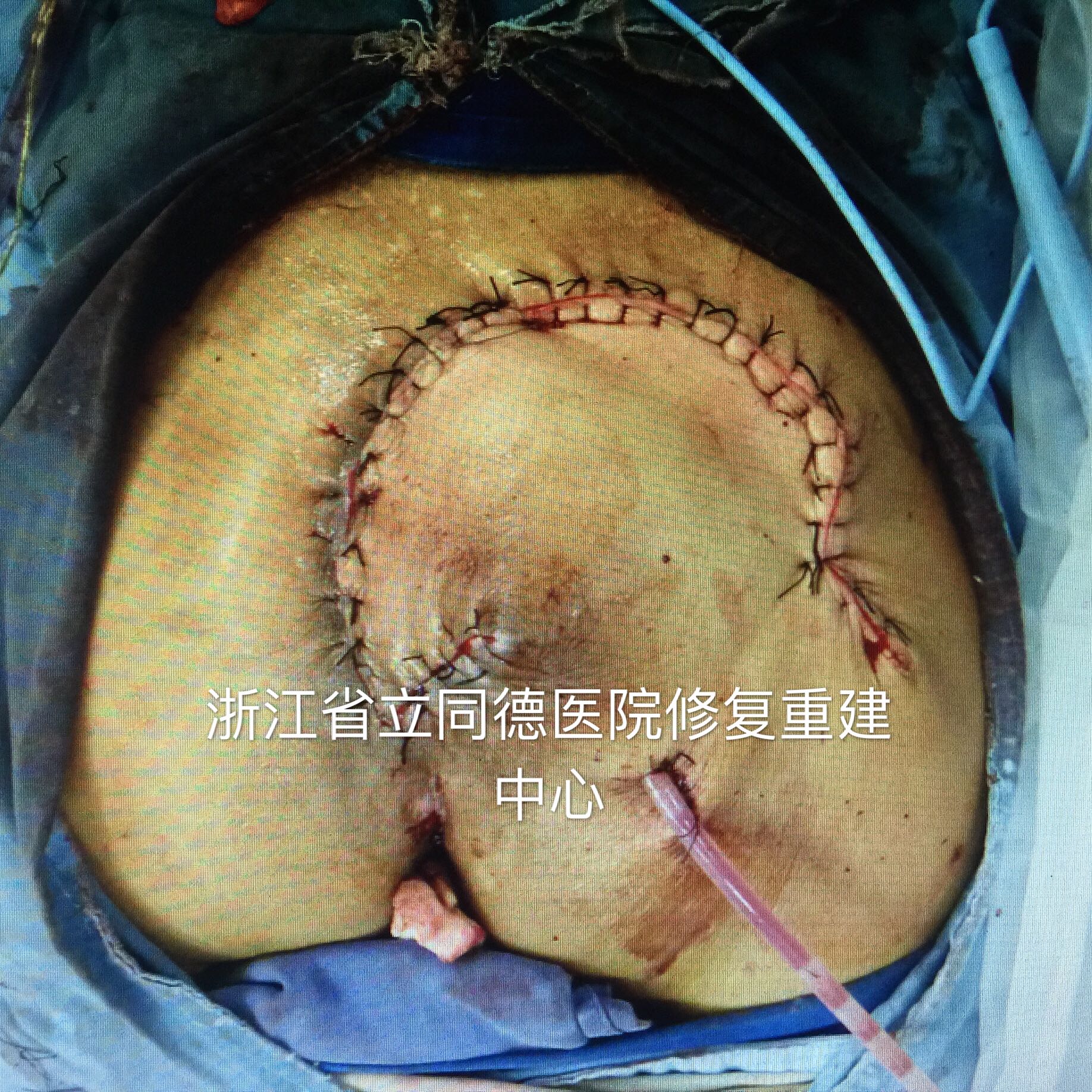 患者,男性,41岁,高位截瘫患者,长期卧床导致骶尾部褥疮形成,一期行臀大肌肌肉瓣修复