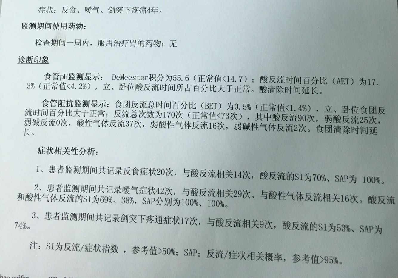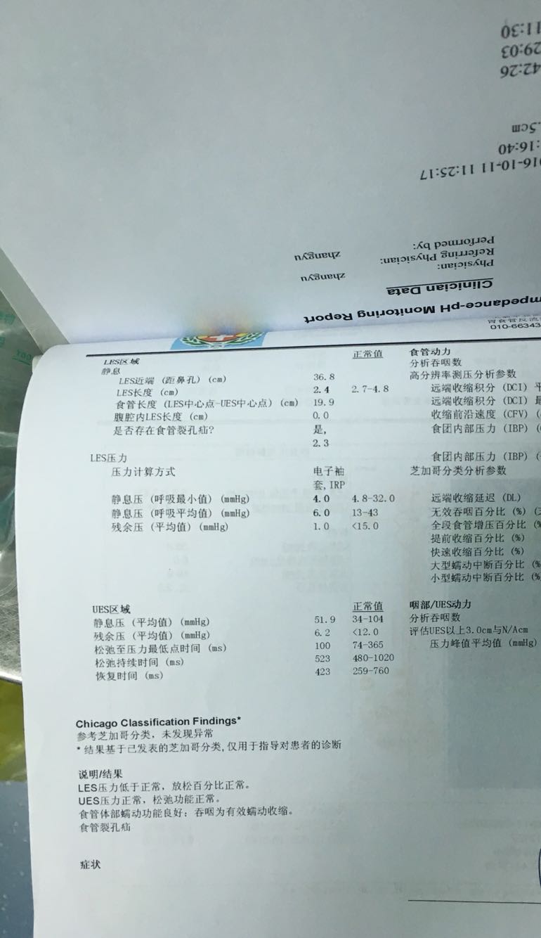 患者,女,67岁 主诉:反食,嗳气伴剑突下疼痛12年 病史:患者12年前无明显诱因出现反酸、嗳气、反食,剑突下闷胀疼痛不适,呕吐咖啡色胃内容物,呕吐后剑突下不适缓解,多于饭后及平卧位发作,反酸有时可引起呛咳,于新疆医院行胃镜示“十二指肠溃疡”,用药后好转,后间断发作。5年前患者就诊于空军总医院复查胃镜示“食管溃疡,食管炎”,后间断服用“奥美拉唑,兰索拉唑”症状可缓解,停药复发。