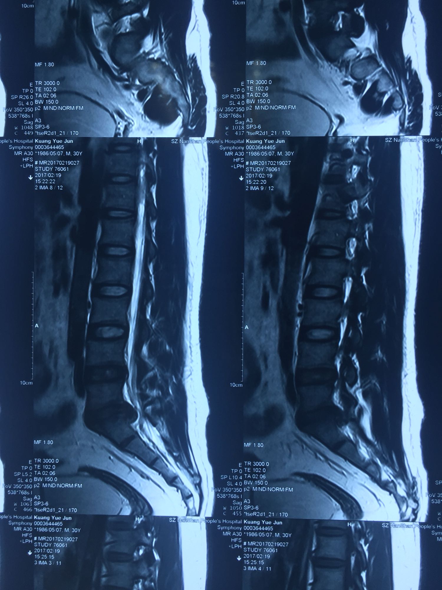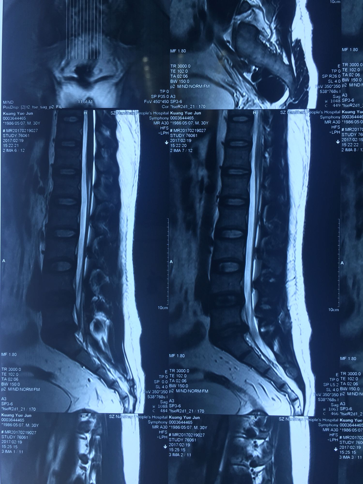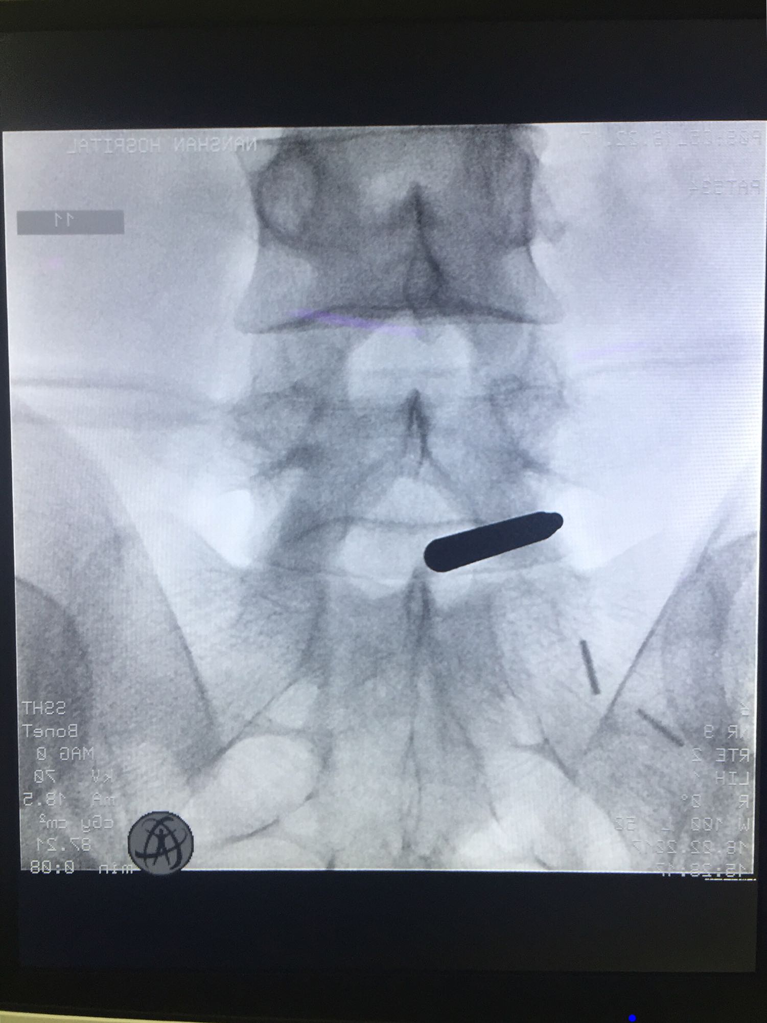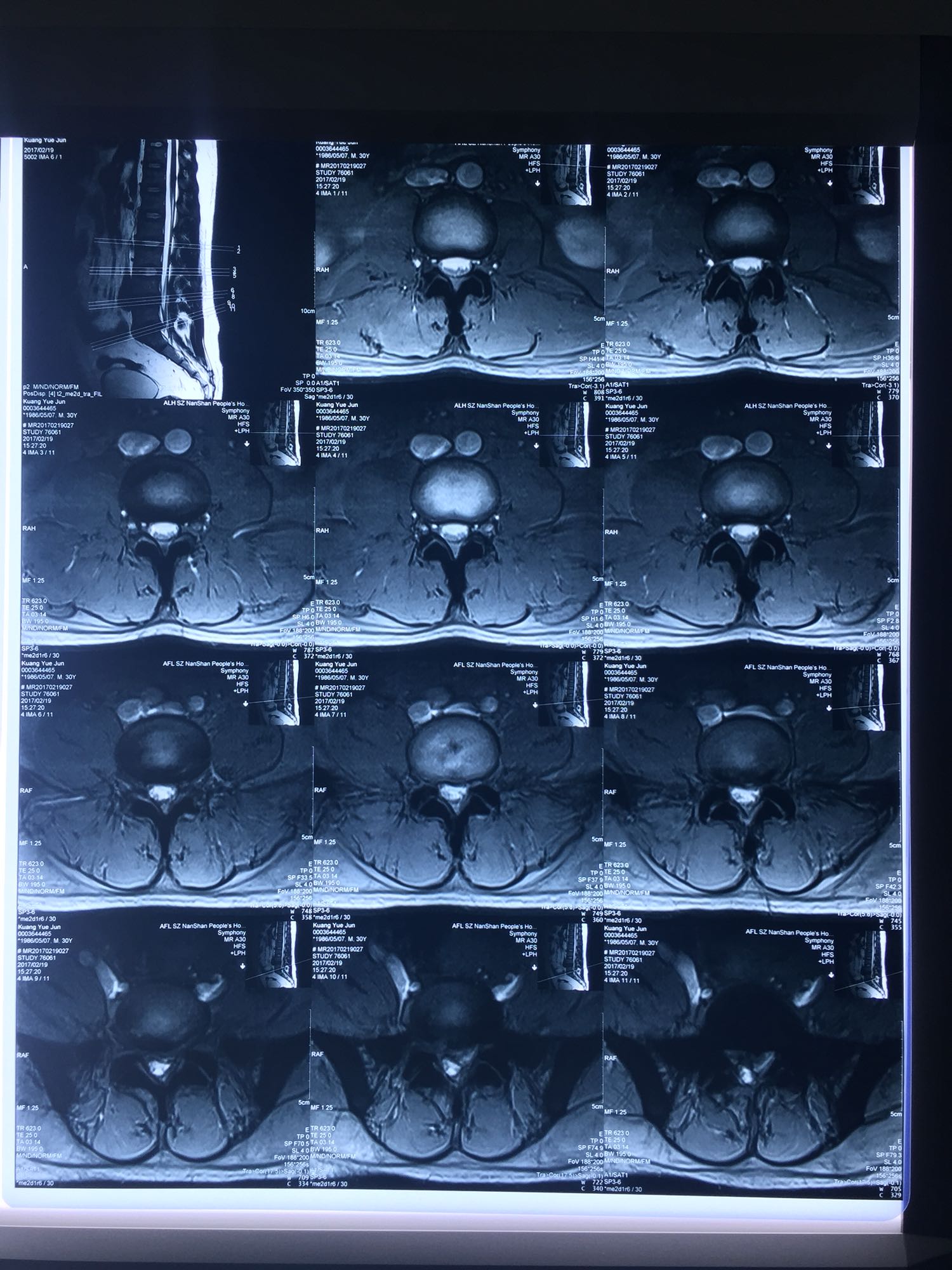 诊断:腰5骶1椎间盘突出症 治疗方案:椎间孔镜下经椎板间入路髓核摘除术