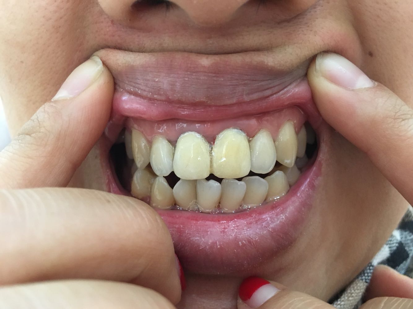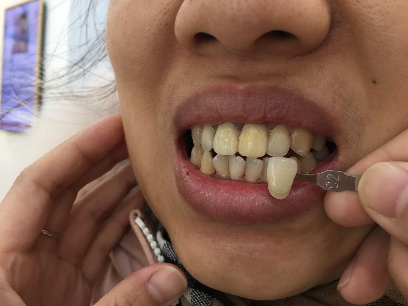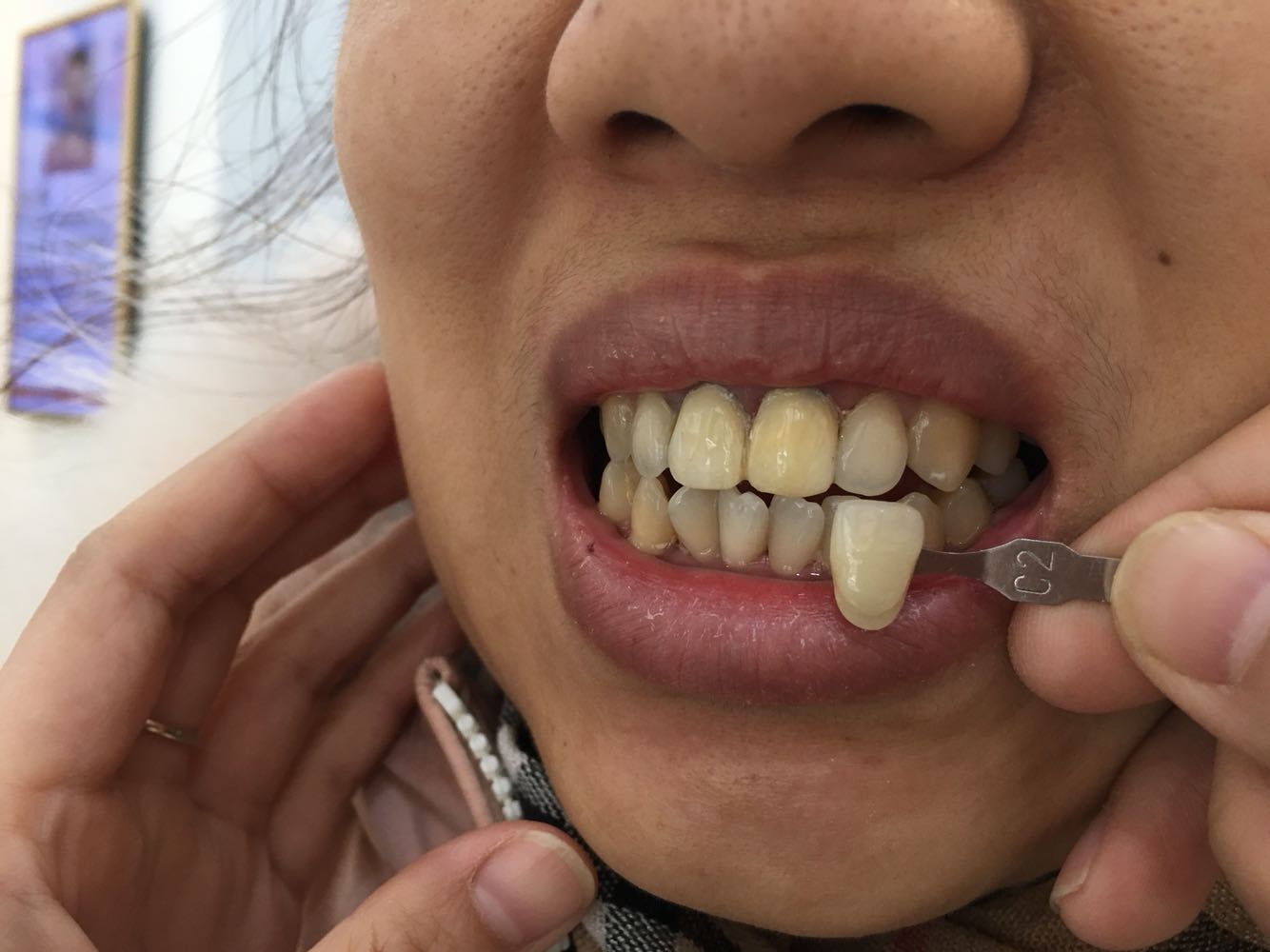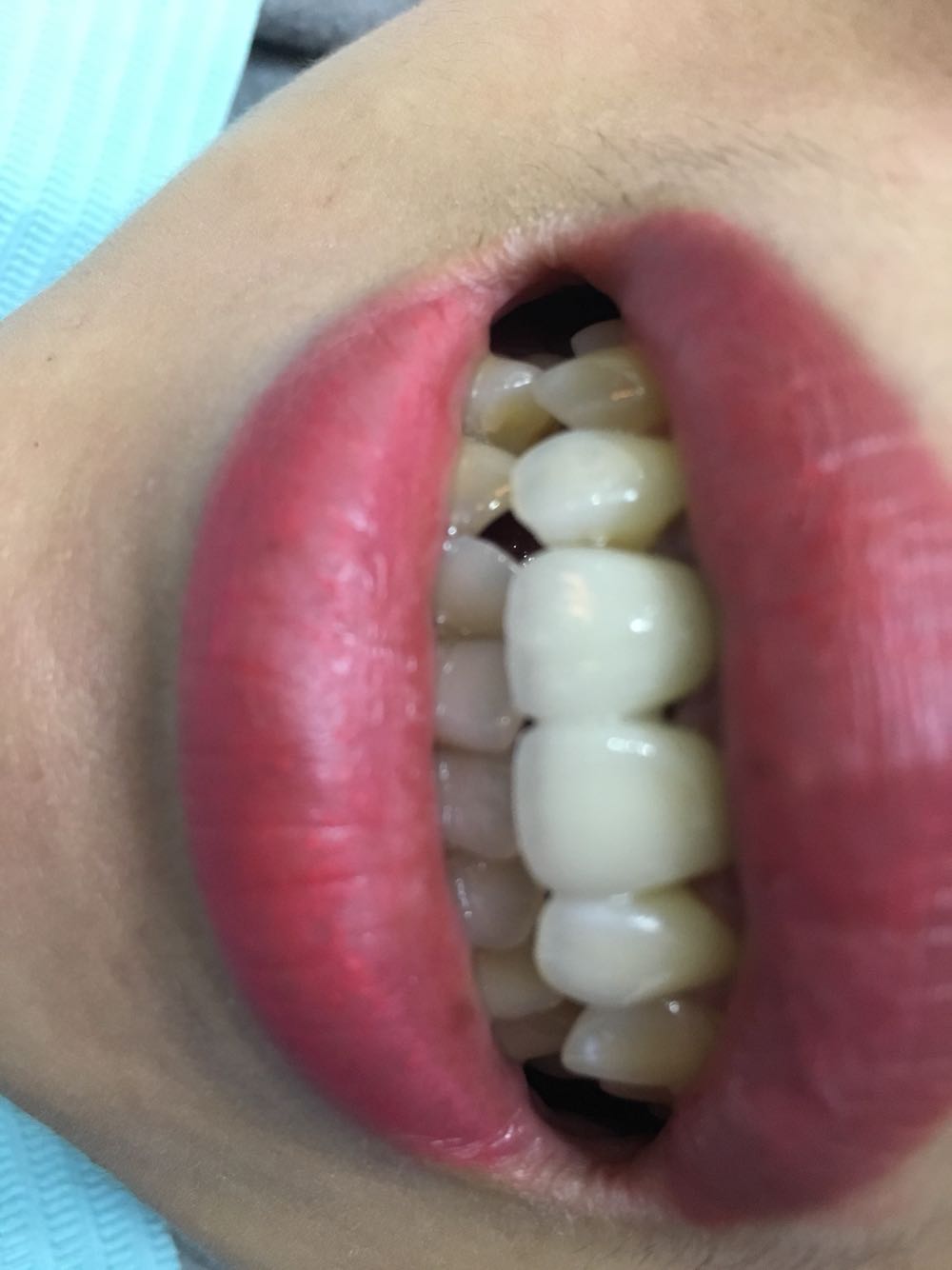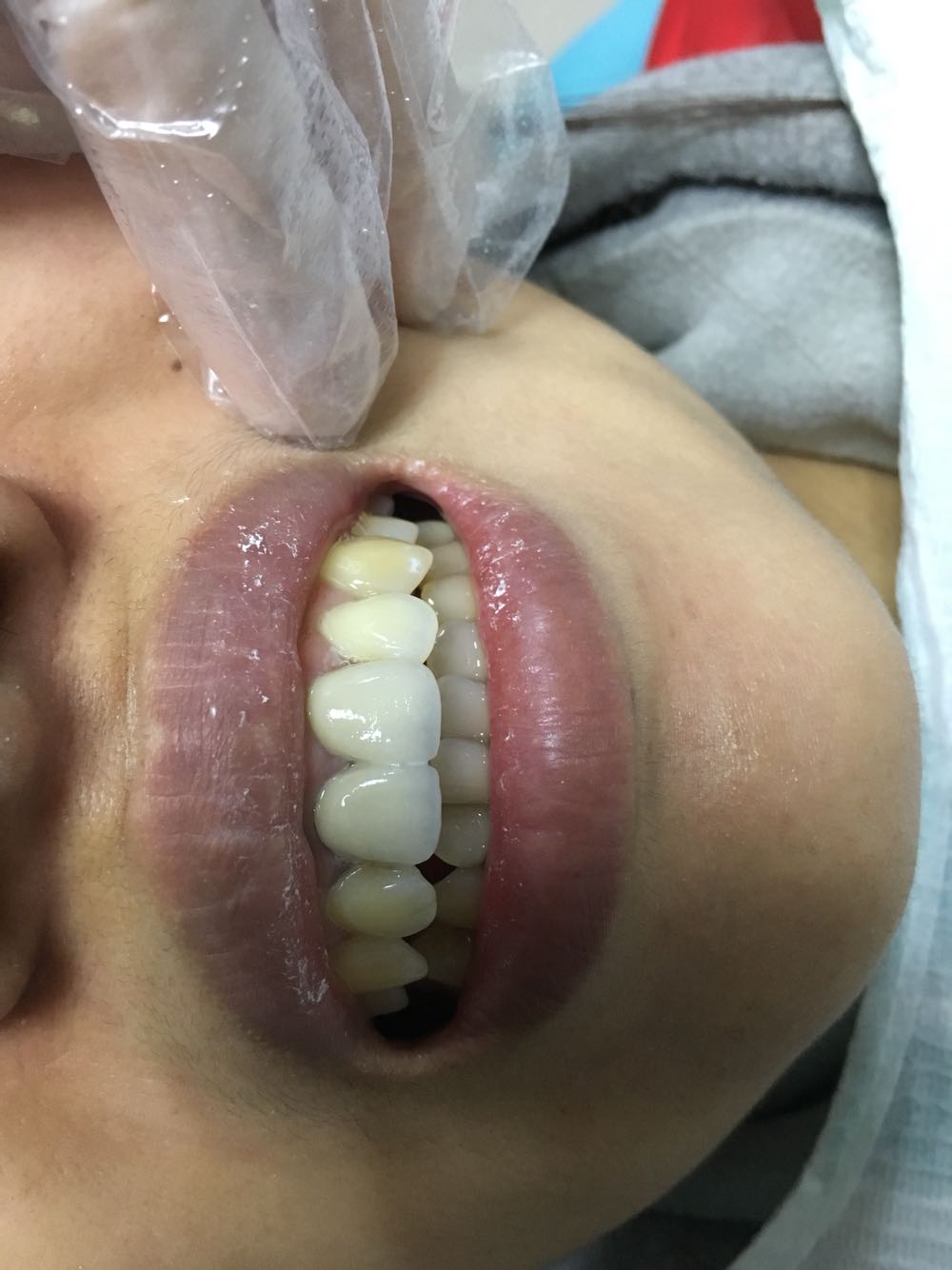 第一次带牙牙体发青.偏白改色之后患者满意3M3525粘结剂粘接