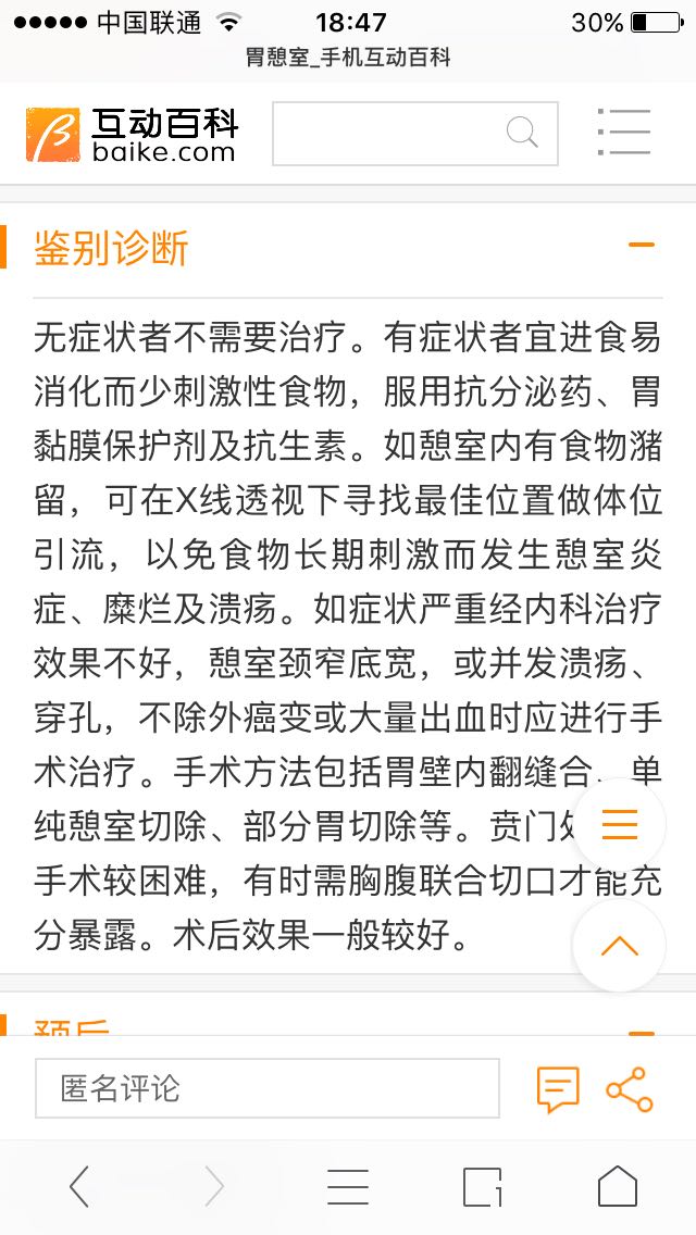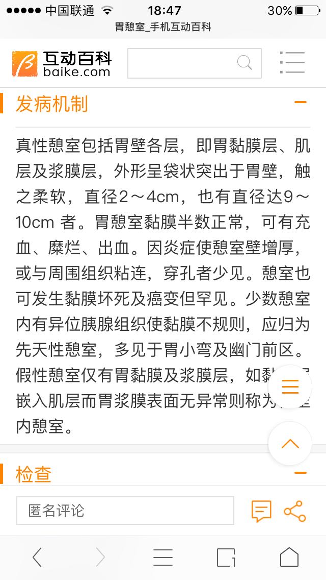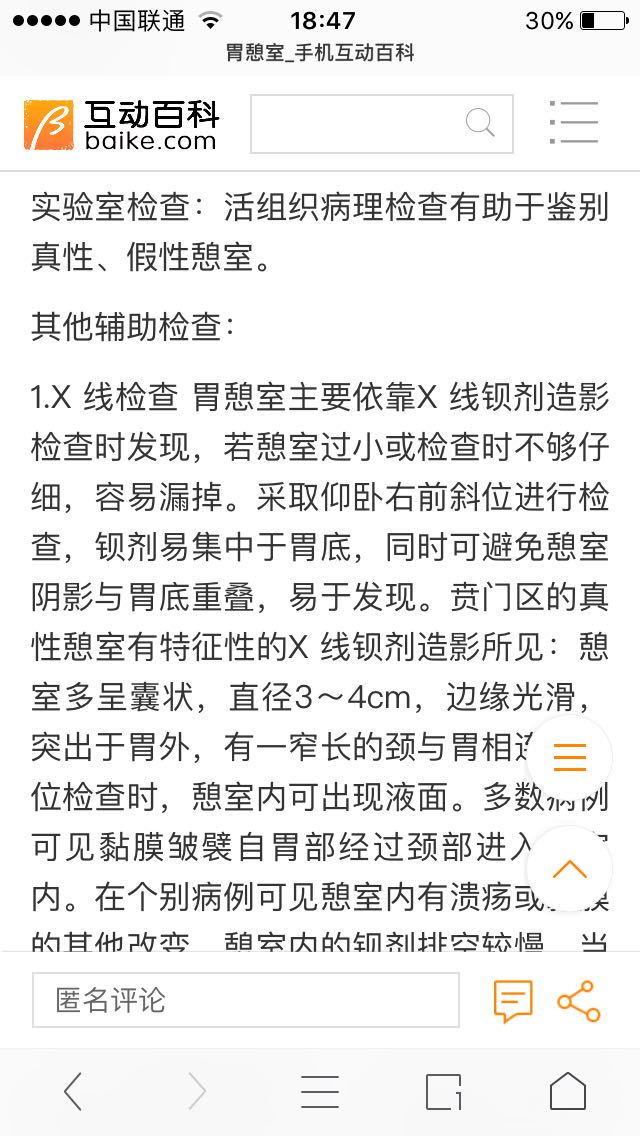 诊断,胃底憩室。 治疗,患者无明显症状,未予治疗。