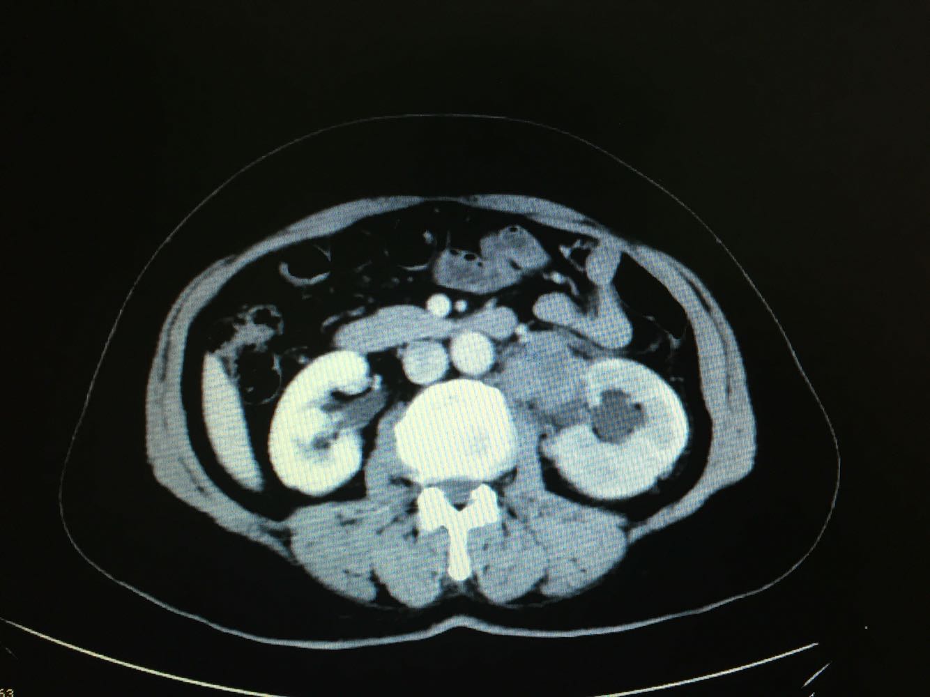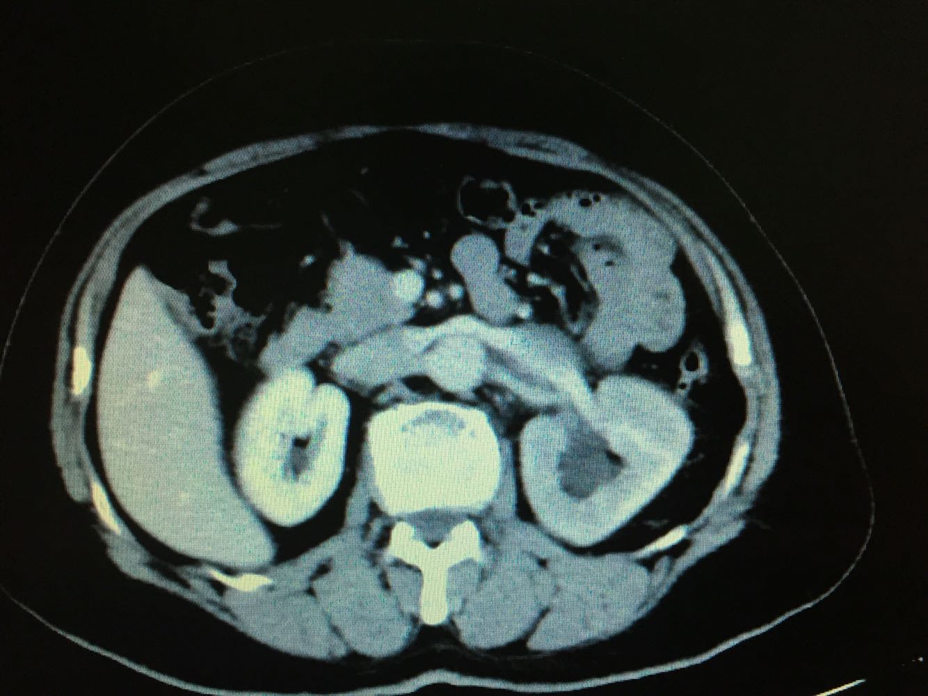 CT提示,左侧肾门处雪人样占位,包裹左肾静脉,左肾积水,与胰腺及左肾关系密切,血常规,肝肾功未见明显异常,GFR左侧27,右侧58。