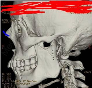 颏部未见明显外伤,CT提示左侧髁部骨质连续性中断。