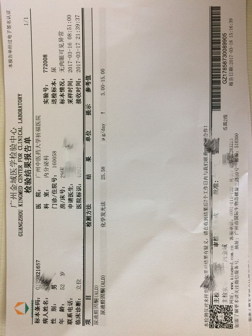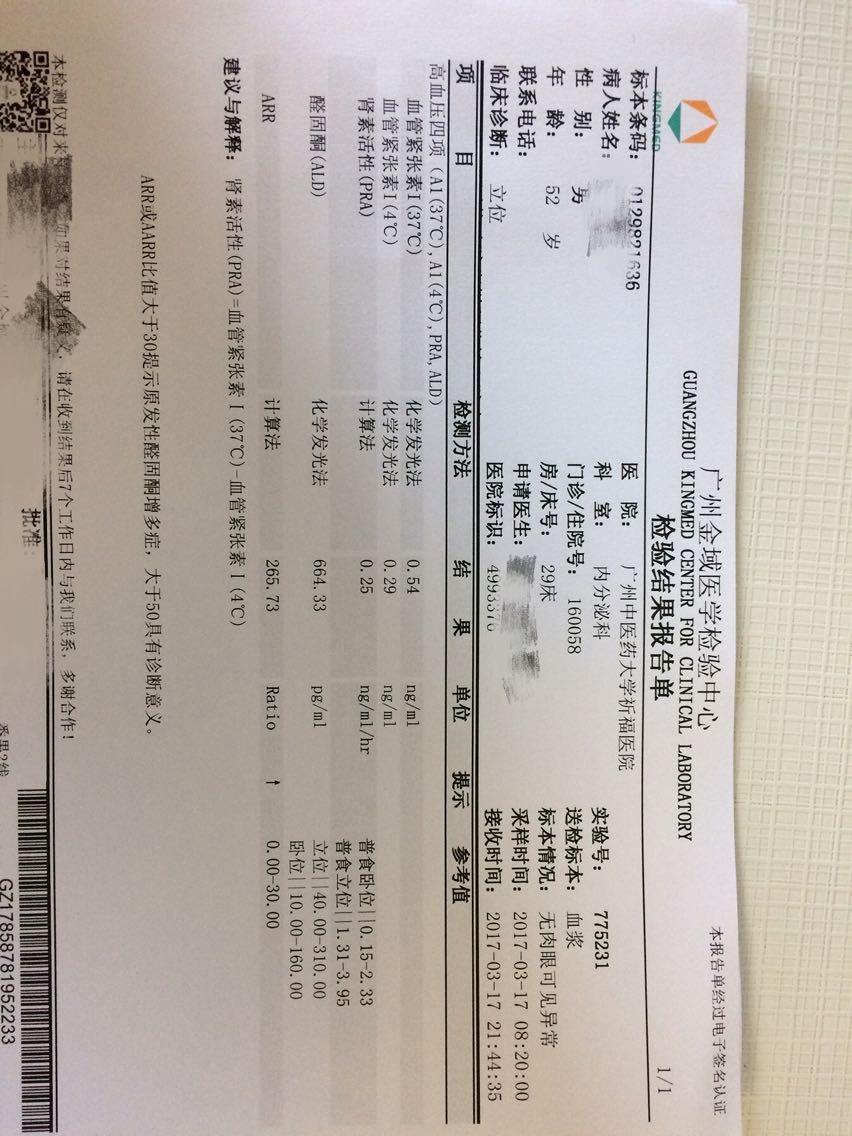 患者,男,52岁, 因“反复头晕、心悸6年,再发伴加重1月”,由门诊拟诊“继发性高血压?”收入院。 患者于2010年7月无明显诱因出现头晕、心悸、出汗,至我院急诊就诊,测血压247/155mmHg,入院我院消化科,当时患者未同意行继发性高血压筛查,经对症处理出院后,长期规律服用“拜新同30mg 每日一次”平素血压控制在140/90mmHg左右。出院后间断出现心悸、头晕,无出汗。2015年3月患者因上腹痛再次入住我院消化科,入院查血钾2.58mmol/L,经积极补钾后血钾仍波动在3mmol/L左右。2015年下半年血压在170/100mmHg左右,遂加用“代文80mg、络活喜5mg、倍他乐克47.5mg 各每日一次”口服,血压控制在130-140/80-90mmHg。近1月来心悸反复发作,无明显规律,每2-3天发作1次,或每日发作1-2次,呈阵发性,每次约数1分钟左右,当时未测血压,近期至我院门诊就诊,考虑“继发性高血压”可能性大,为求进一步系统诊治,由门诊拟“继发性高血压?”收入院。 入院症见:神清,精神稍倦,乏力,时有阵发性心悸,持续1分钟左右,暂无头晕头痛,无出汗。 既往2016年10月在“番禺区中心医院”行冠脉CTA检查,提示“冠脉多发斑块、管腔多发狭窄”。 2年前在“番禺区中心医院”因心率快,予“射频消融术”治疗,后心悸好转,具体不详。 2年前因肾结石,在外用行“右侧肾脏微