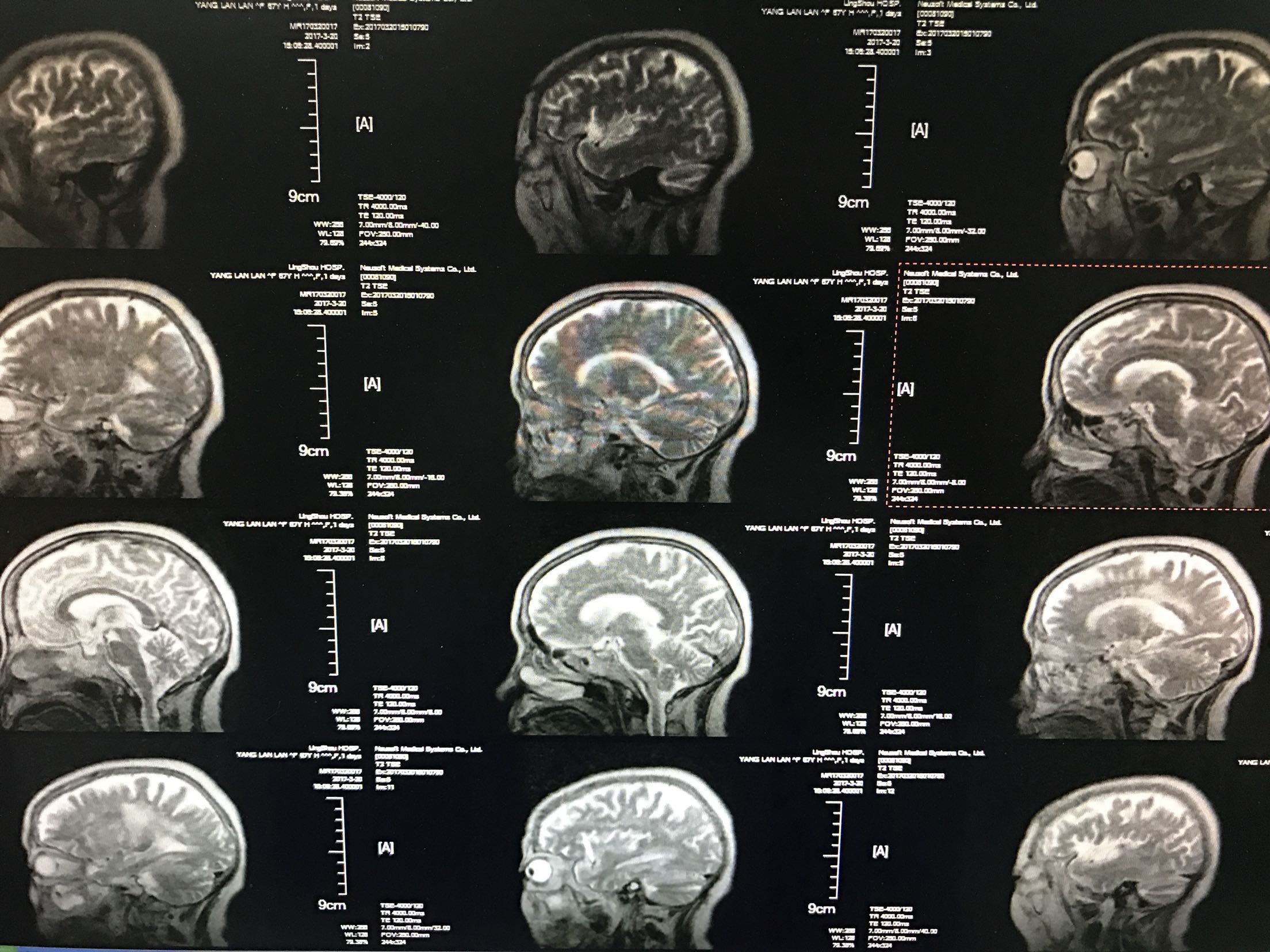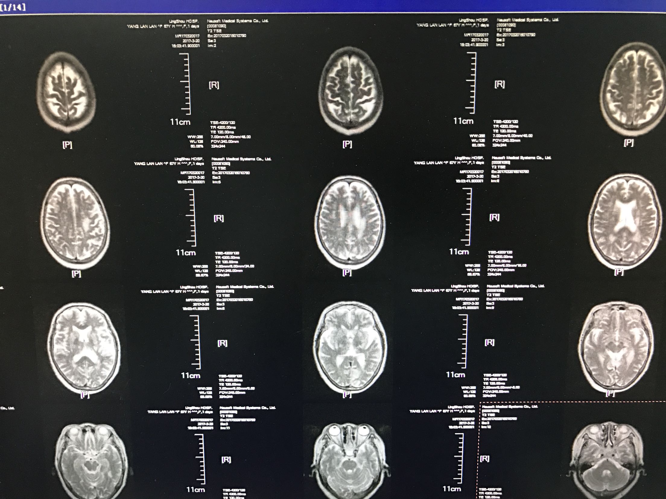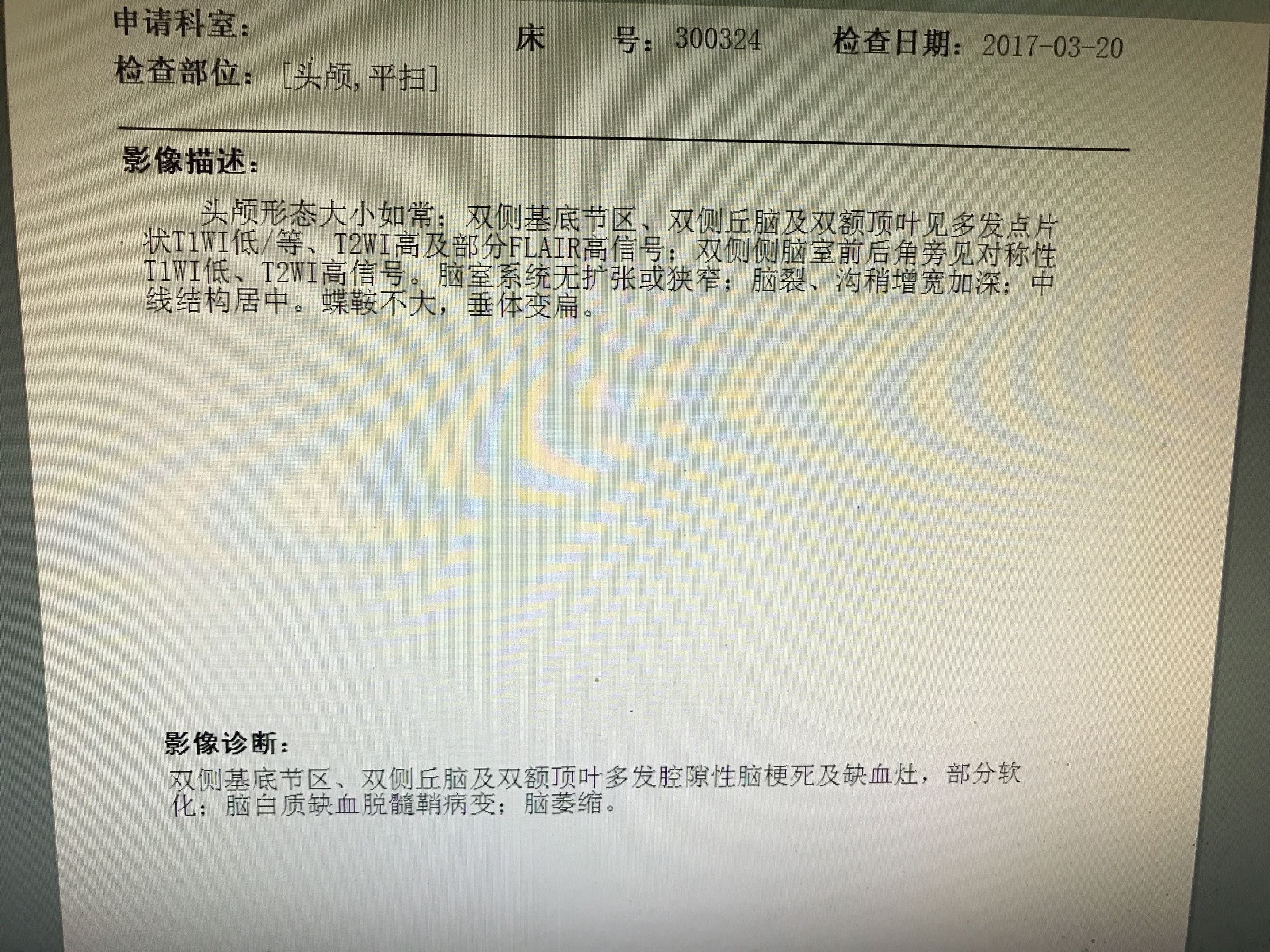 患者中年女性55岁,主因右侧肢体无力,言语不利1天入院,既往糖尿病病史5年,平素口服二甲双胍及格列吡嗪,未控制饮食,自诉血糖控制不佳,时高时低!脑出血病史4年,留有左侧肢体无力,生活尚能自理,患者缘无1天前,活动时突然出现右侧肢体无力,右上肢尚可抬起,持物不牢,右下肢不能负重,不能自行行走,同时出现言语不利,说话含糊不清,但无听理解障碍,查CT:双侧基底节,左丘脑腔梗及软化灶,测血糖18.3mmol/l,为进一步治疗收住院