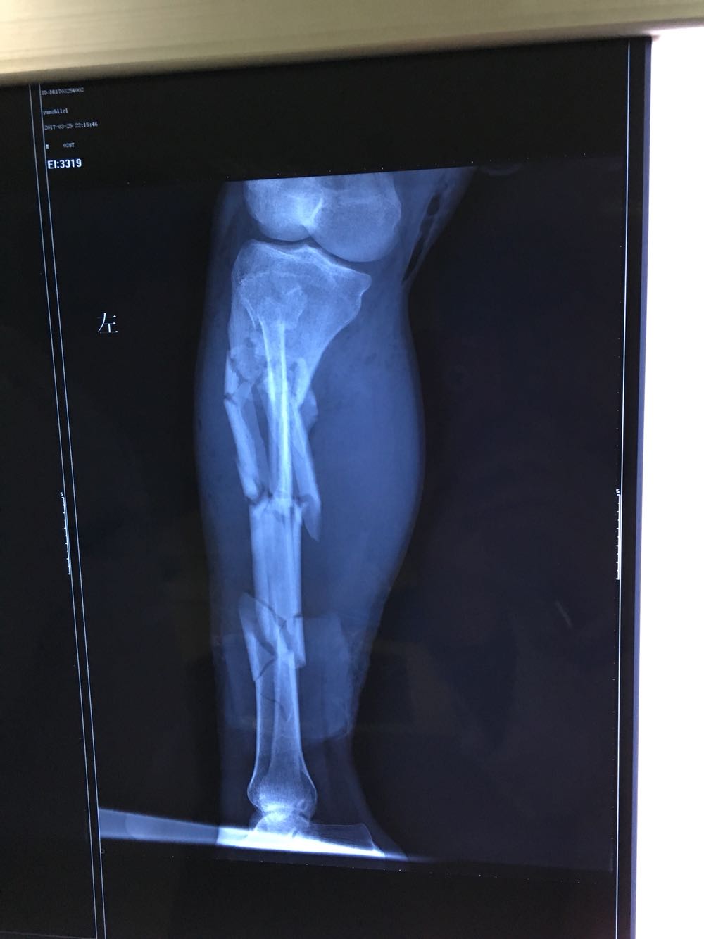 双下肢开放性骨折 多脏器功能不全 入院后立即给予补液抽血补充血浆及红细胞,完善术前检查,左下肢减张固定,右下肢跖跗关节远端离断。术后患者转至上级医院进一步治疗!