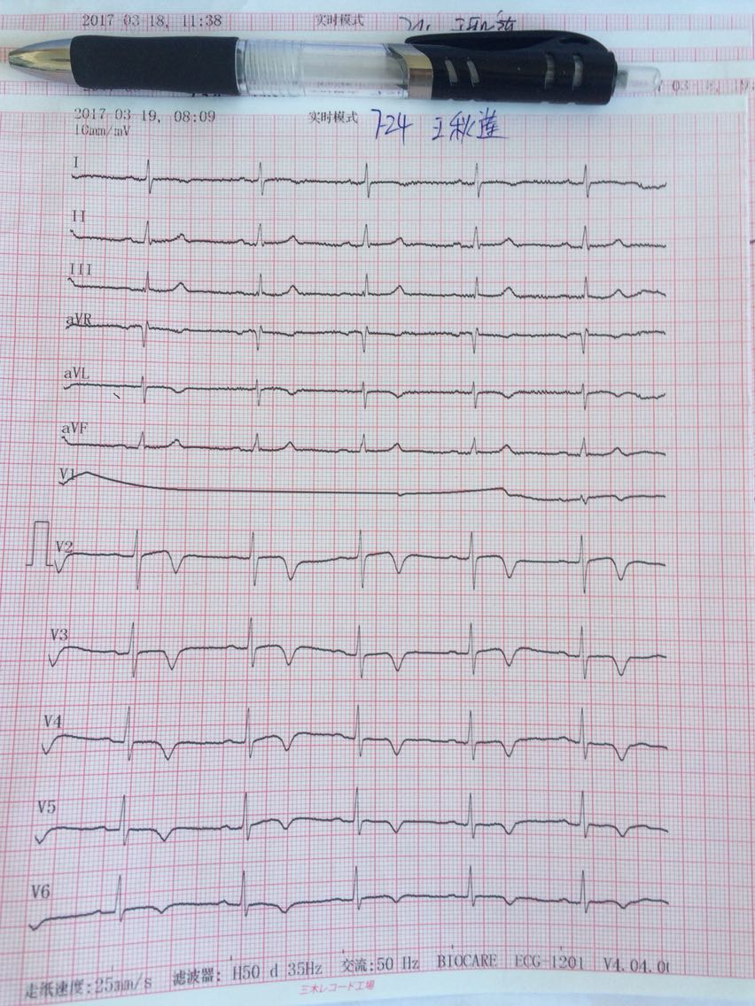 立即予硝酸甘油静点,6分钟后胸憋缓解,心电图如下: