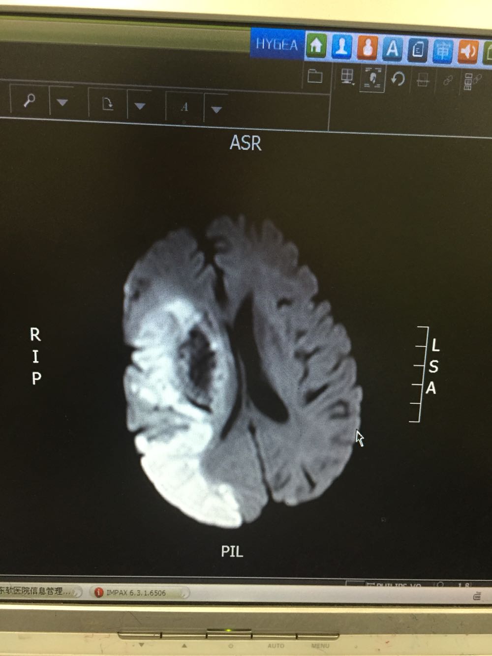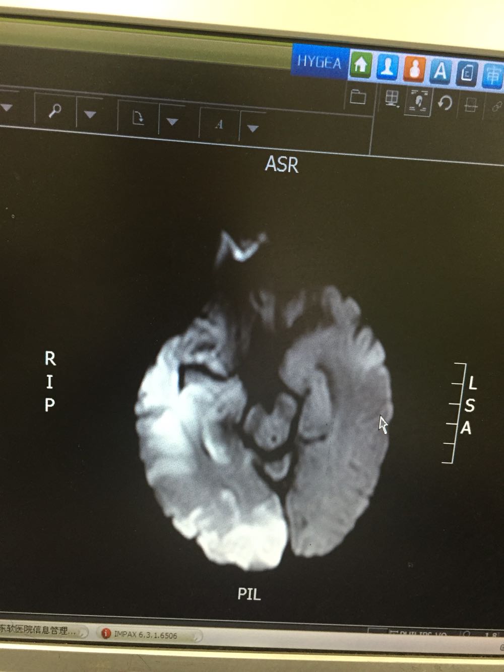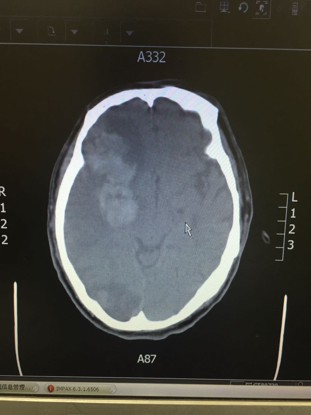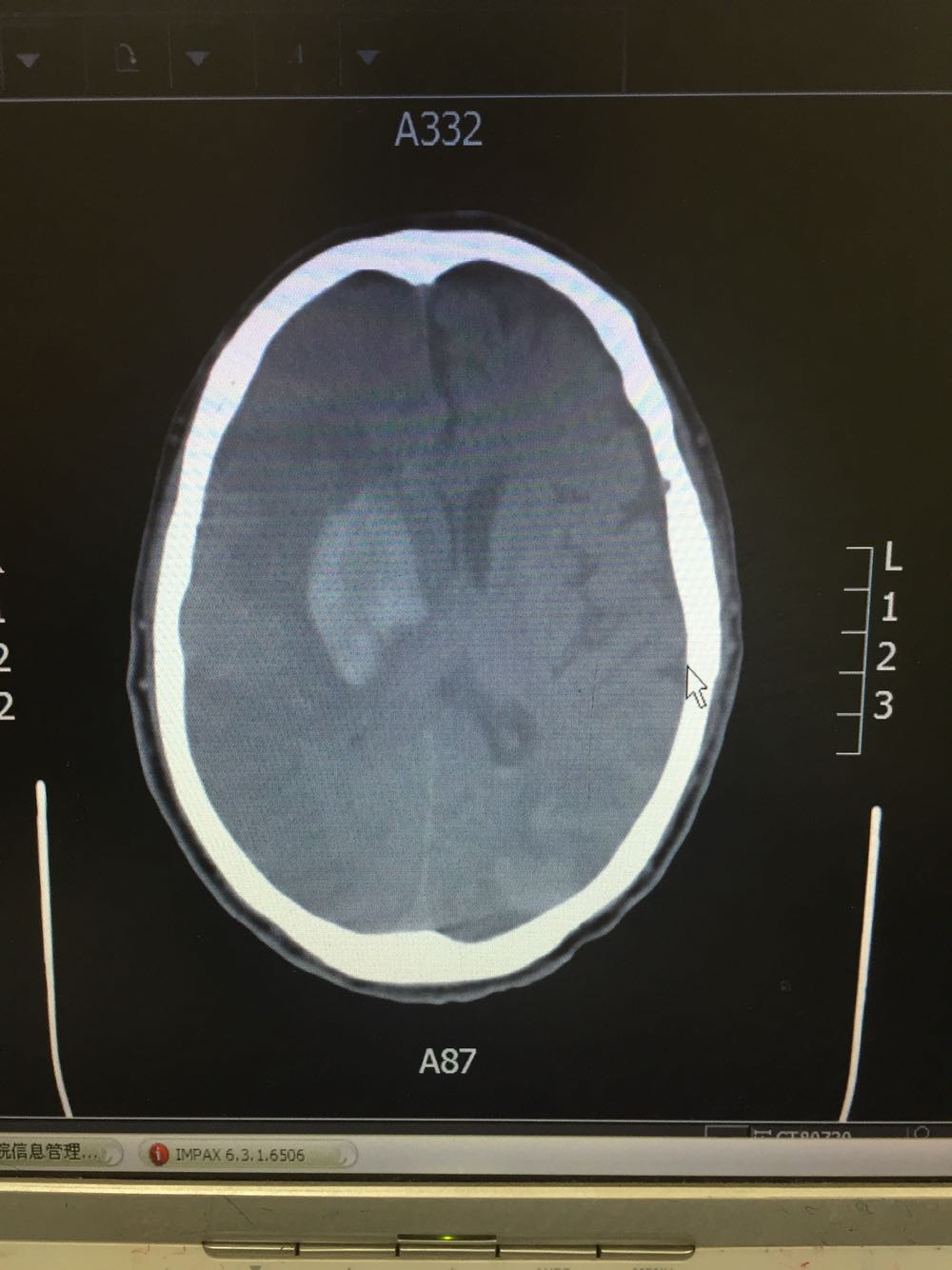 患者入院治疗后症状一度好转,左侧肢体肌力3级+,于入院后第二日病情突然加重,伴意识障碍,头DWI示:脑梗死伴脑出血 右侧大脑中动脉闭塞。停止当前治疗方案,脱水脑保护,营养神经对症治疗。入院后第5日复查头CT示:右侧大面积脑梗死,脑出血吸收期,伴左侧枕叶脑出血。患者左侧枕叶脑出血不好解释,能否是搬运及护理时外伤所致?