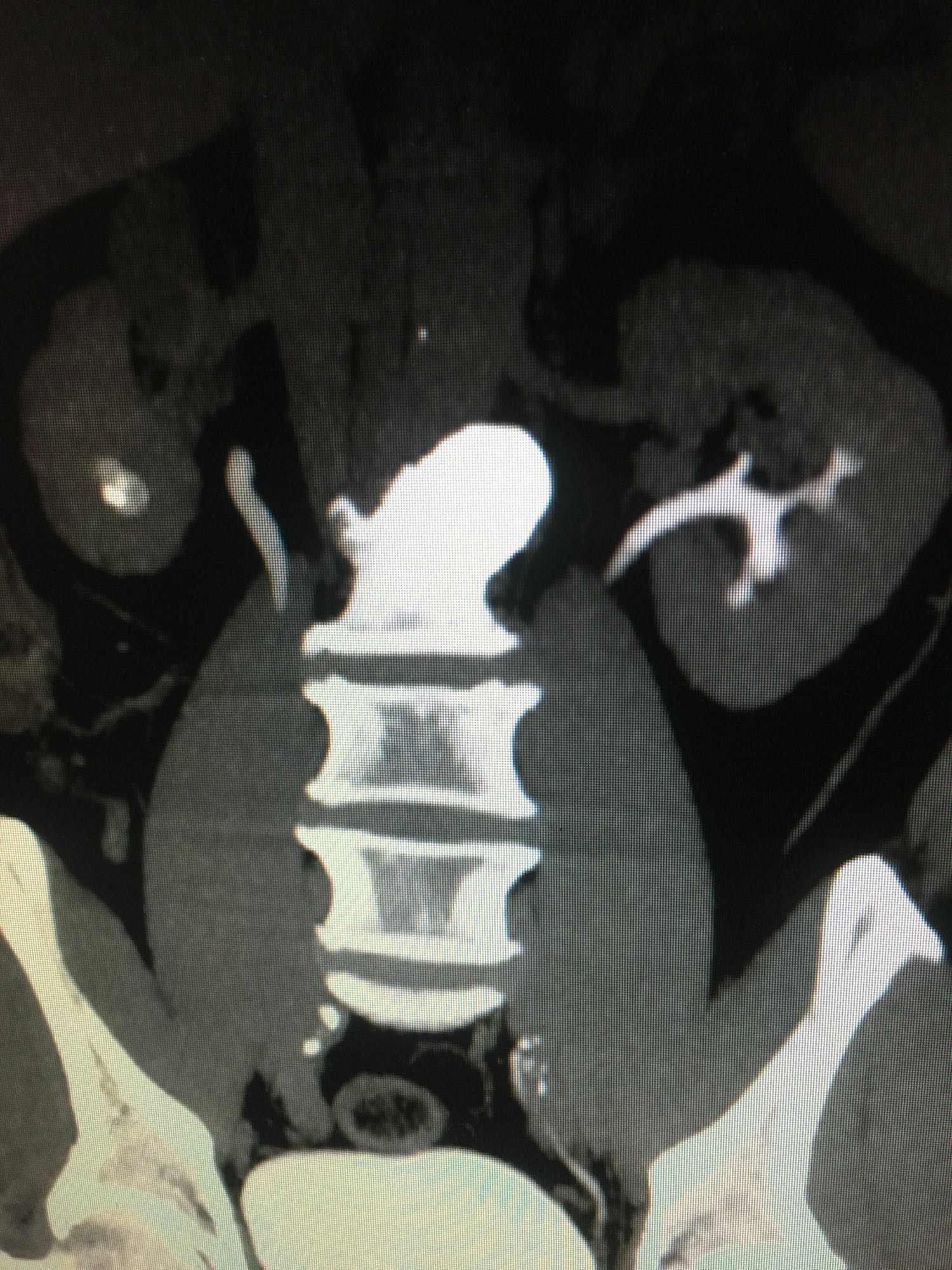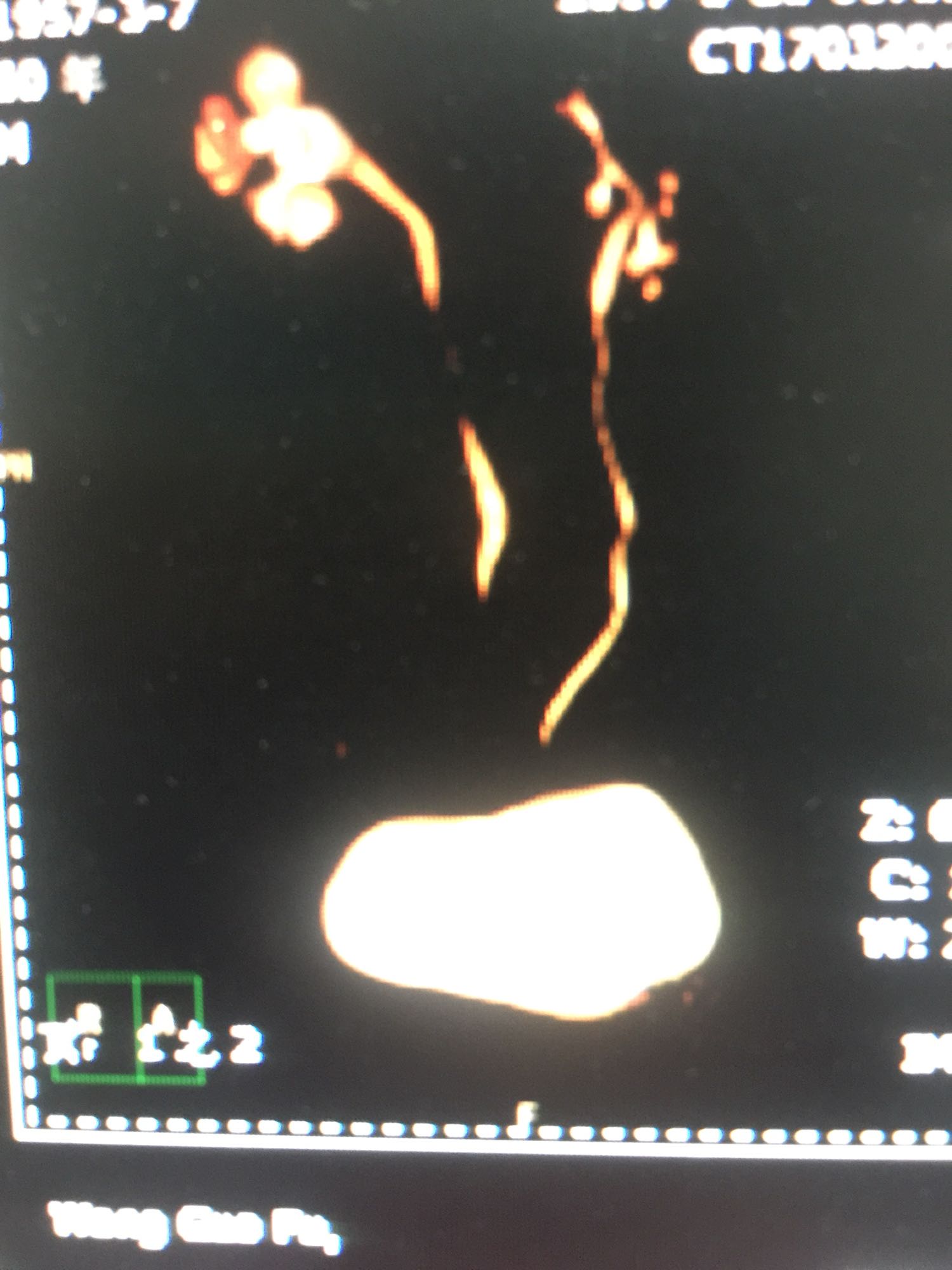 60岁男性 既往无高血压糖尿病等病史 检查发现右侧肾结石10年 10年前检查发现右侧肾结石,直径约1厘米,未给予正规治疗,近日来我院门诊,行彩超发现右肾多发结石,进一步治疗入院。