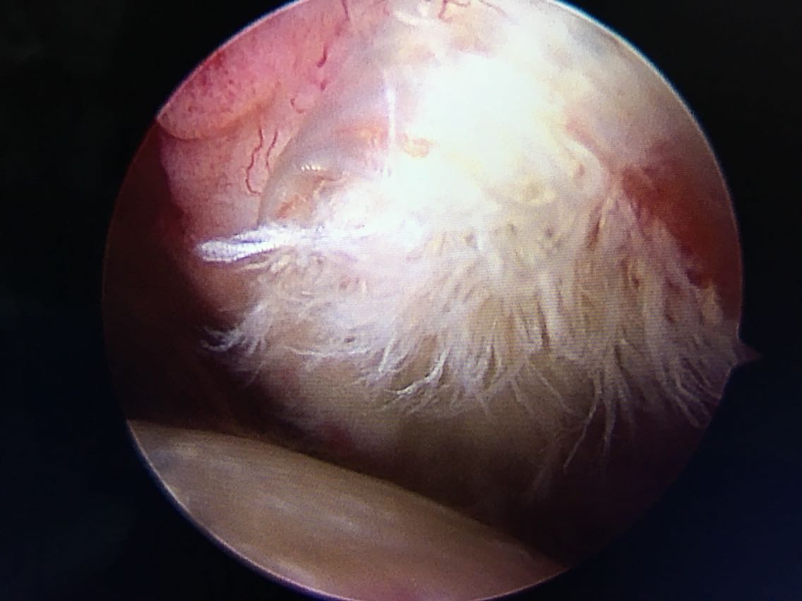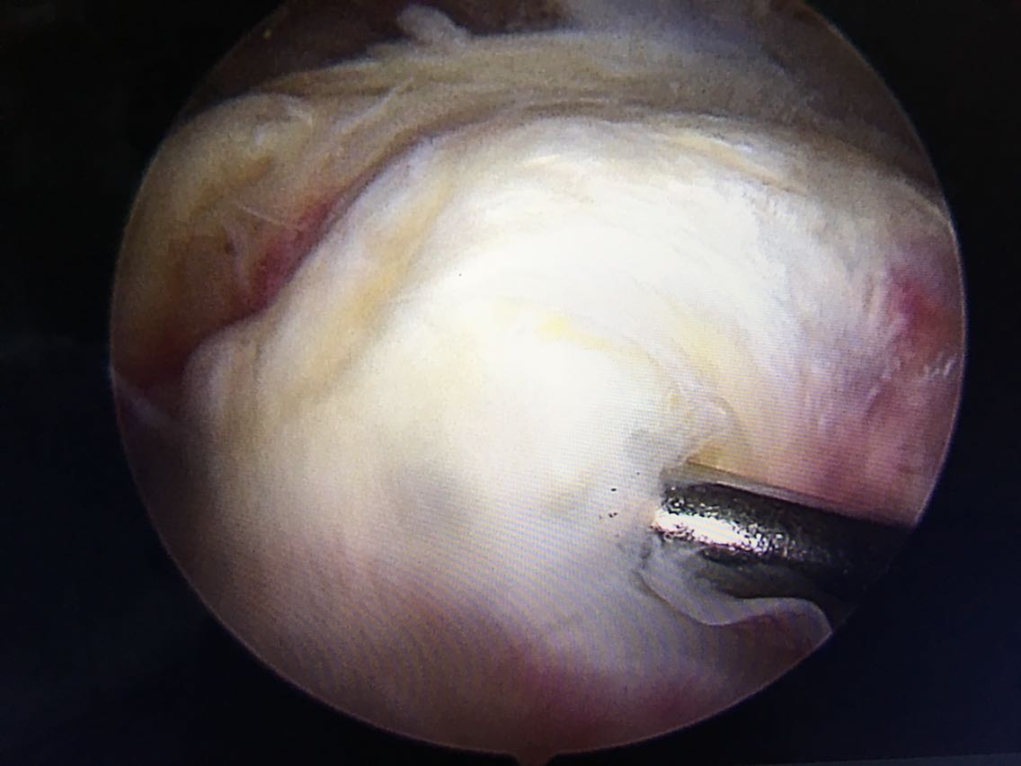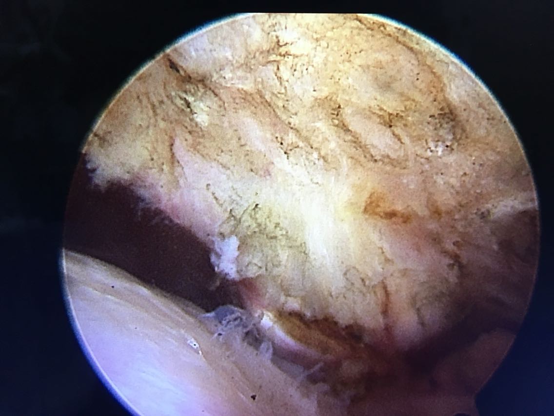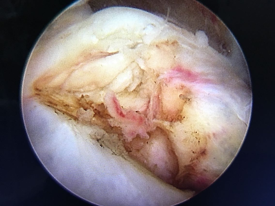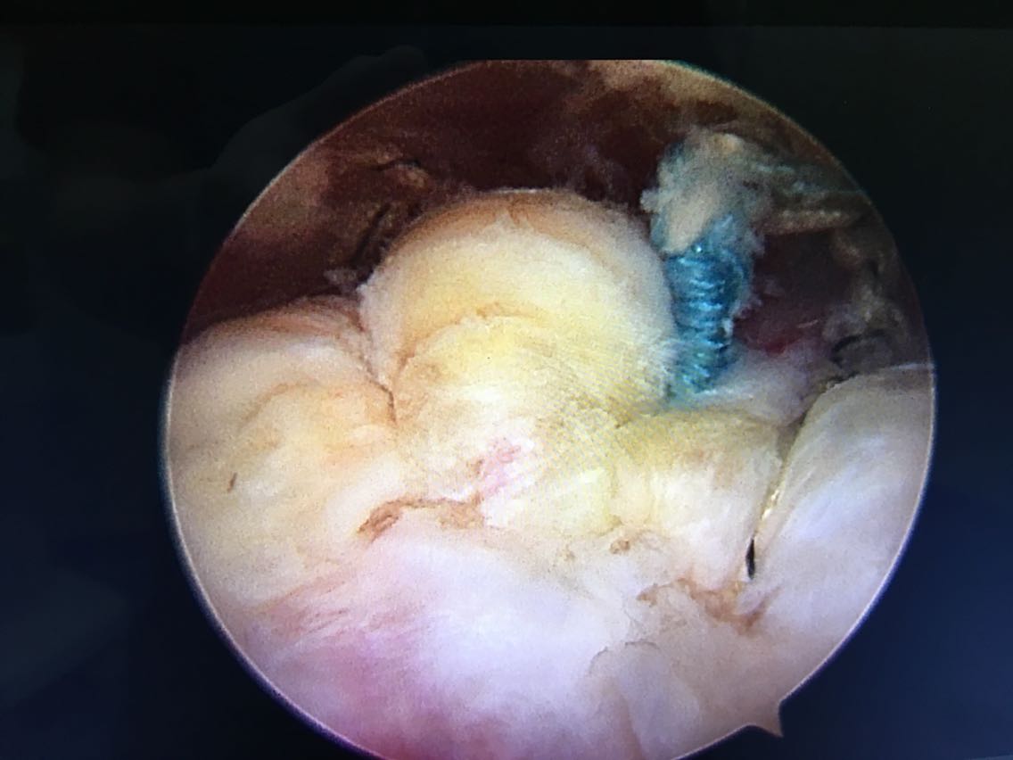 诊断:右肩袖撕裂 肩峰撞击症 冻结肩 治疗:关节镜下清理 肩峰撞击成形 肩袖撕裂修补手术。