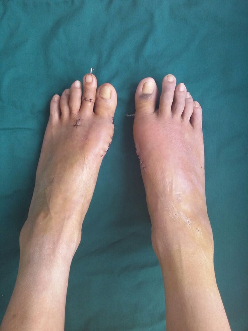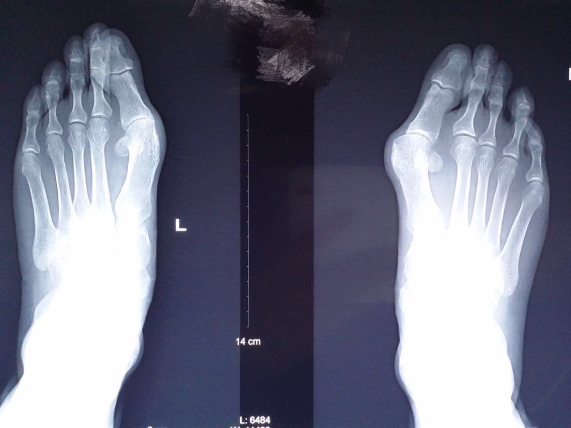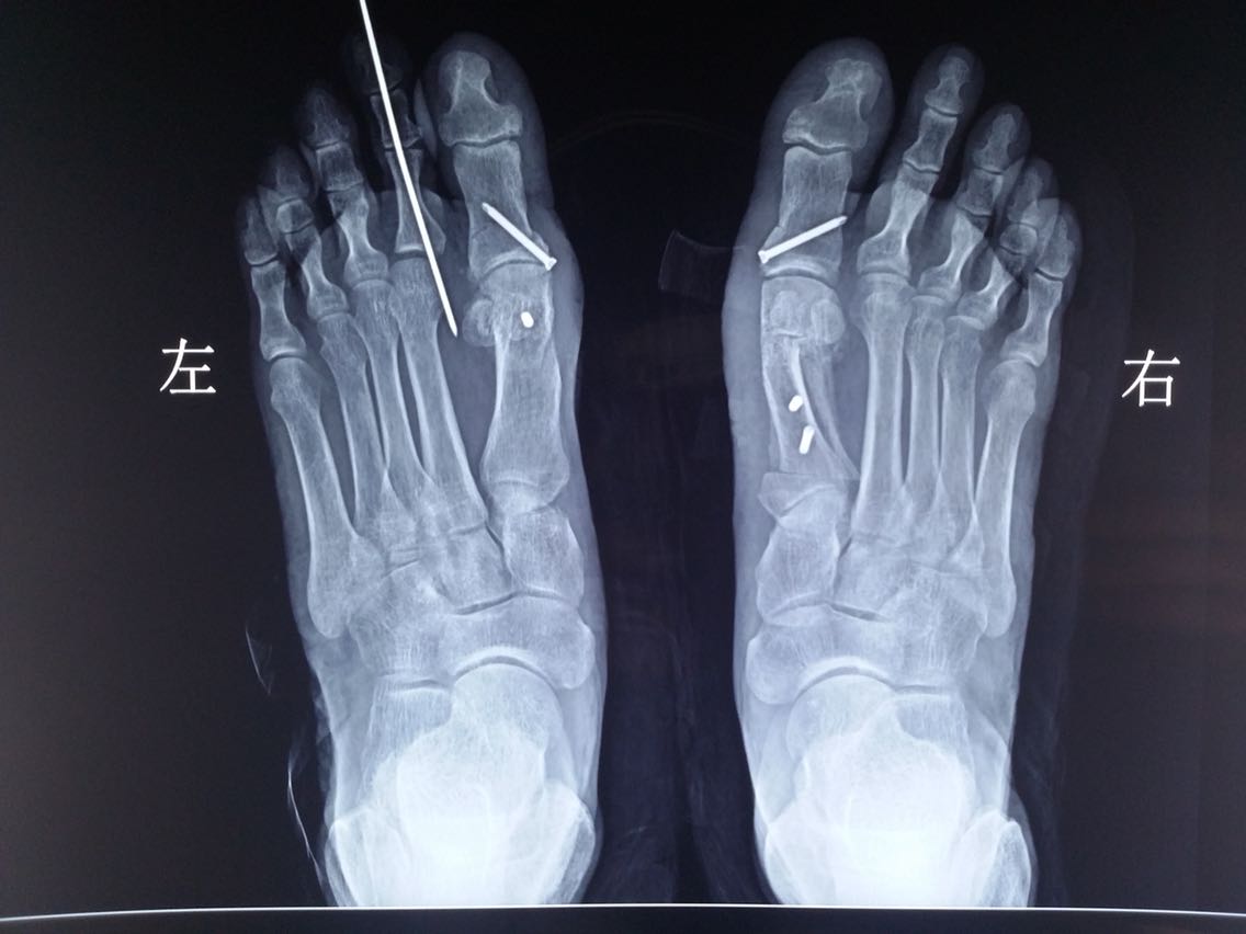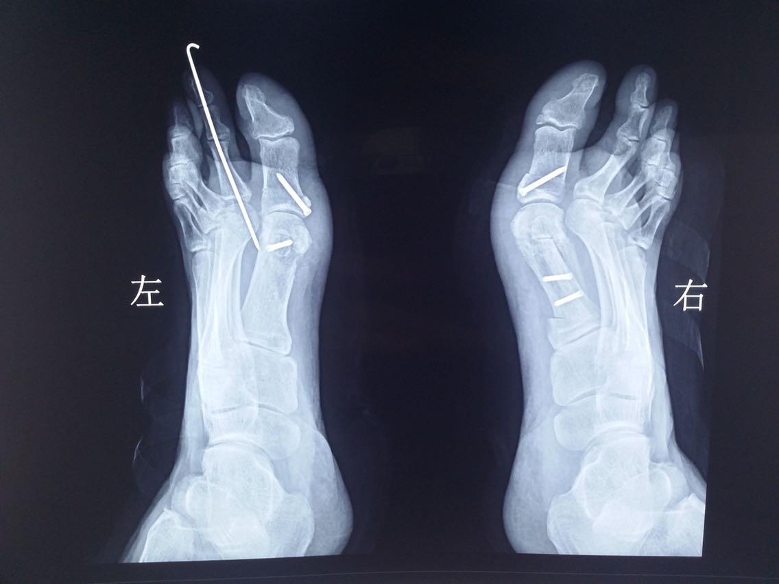 诊断:双足拇外翻畸形 治疗:截骨矫形修复术