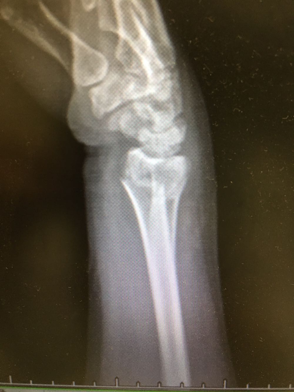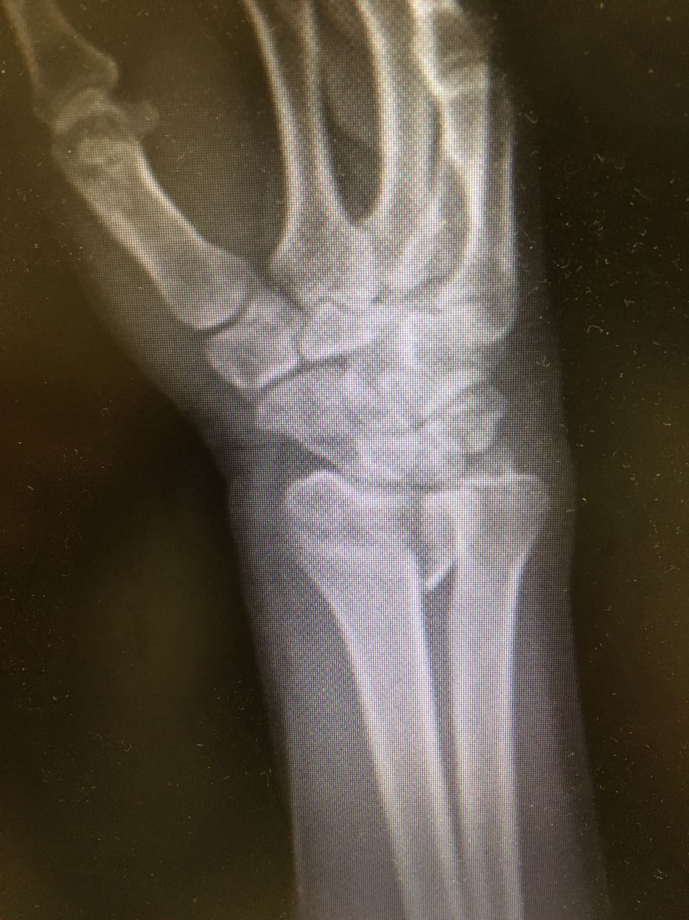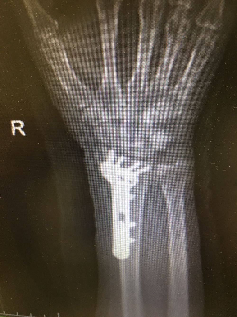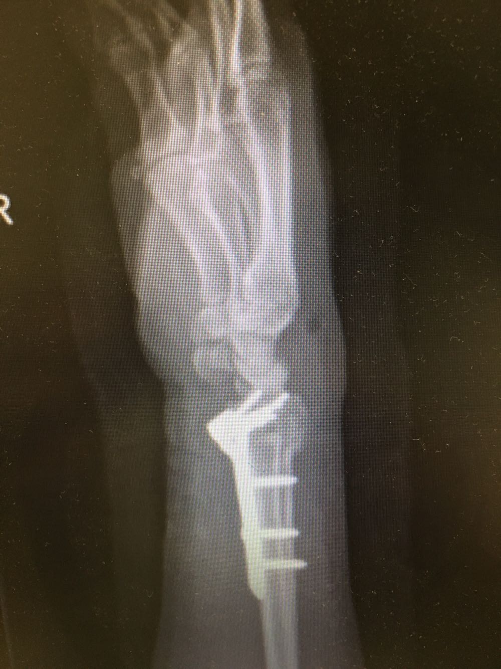 诊断:右侧尺桡骨远端骨折 治疗:完善术前检查后行手术内固定