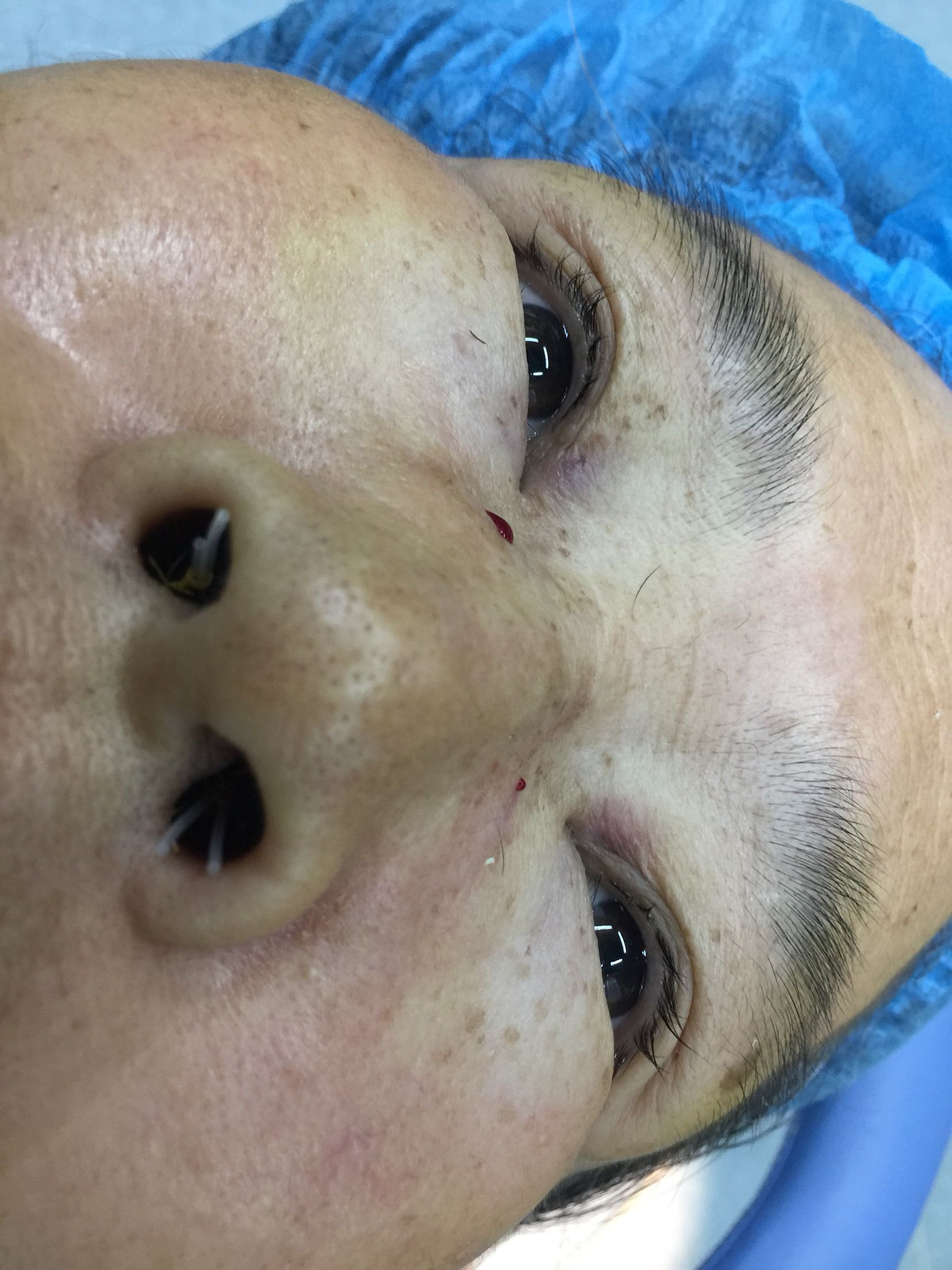 双眼流泪10年余。患者刘xx,女性,60岁。缘于10年前双眼流泪偶伴分必物,无眼红眼疼,曾在门诊给以泪道冲洗,诊断双眼泪道阻塞,并给予消炎眼药水点眼,间断治疗无明显好转,今为进一步治疗收入院。既往体健,否认全身病史及药物过敏史。