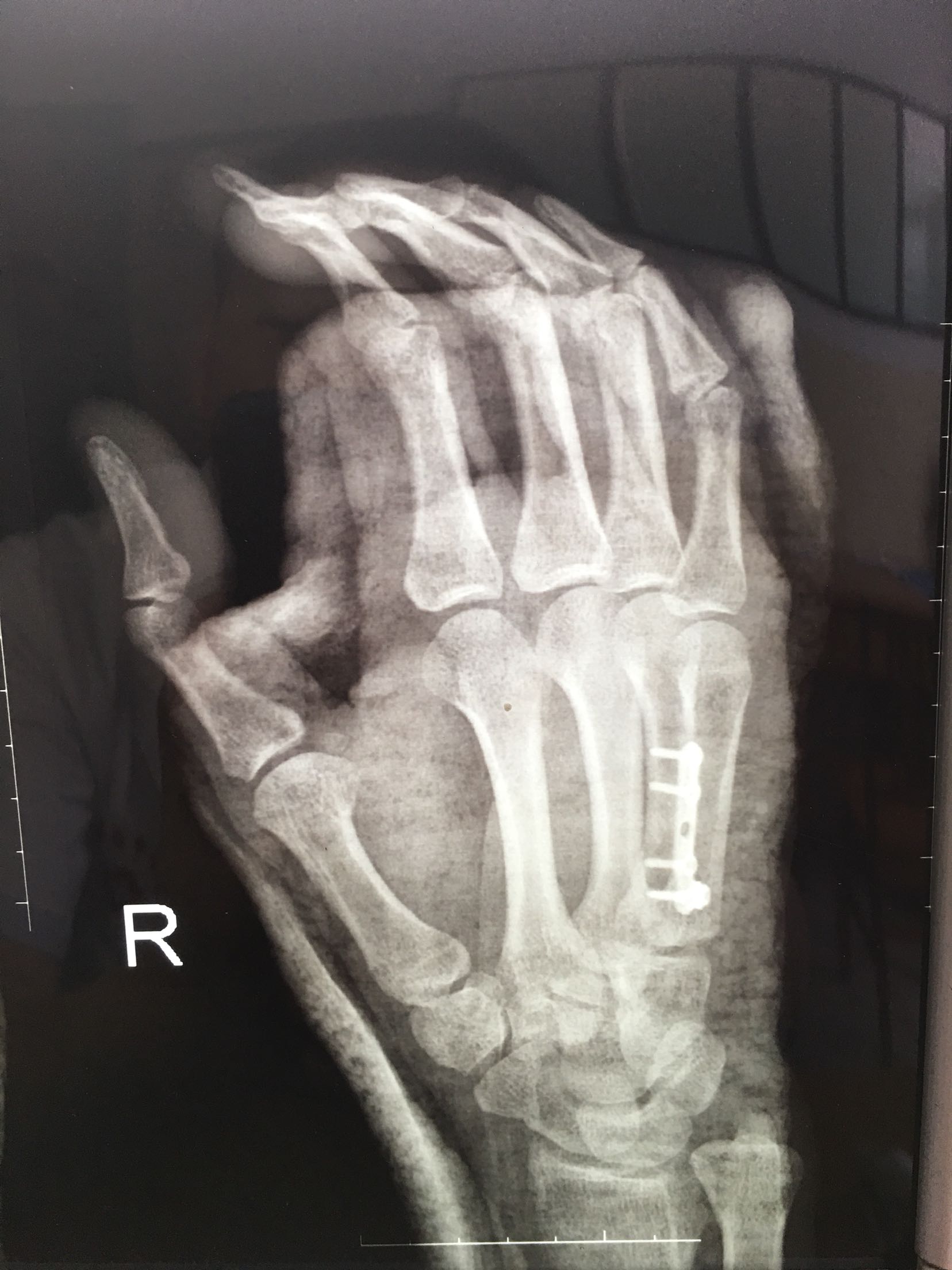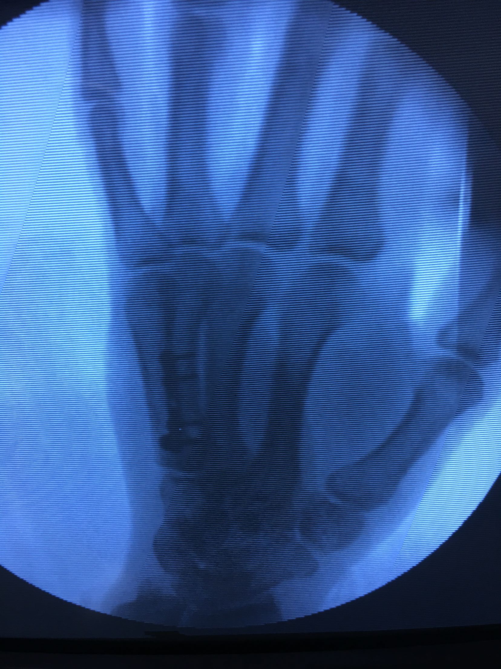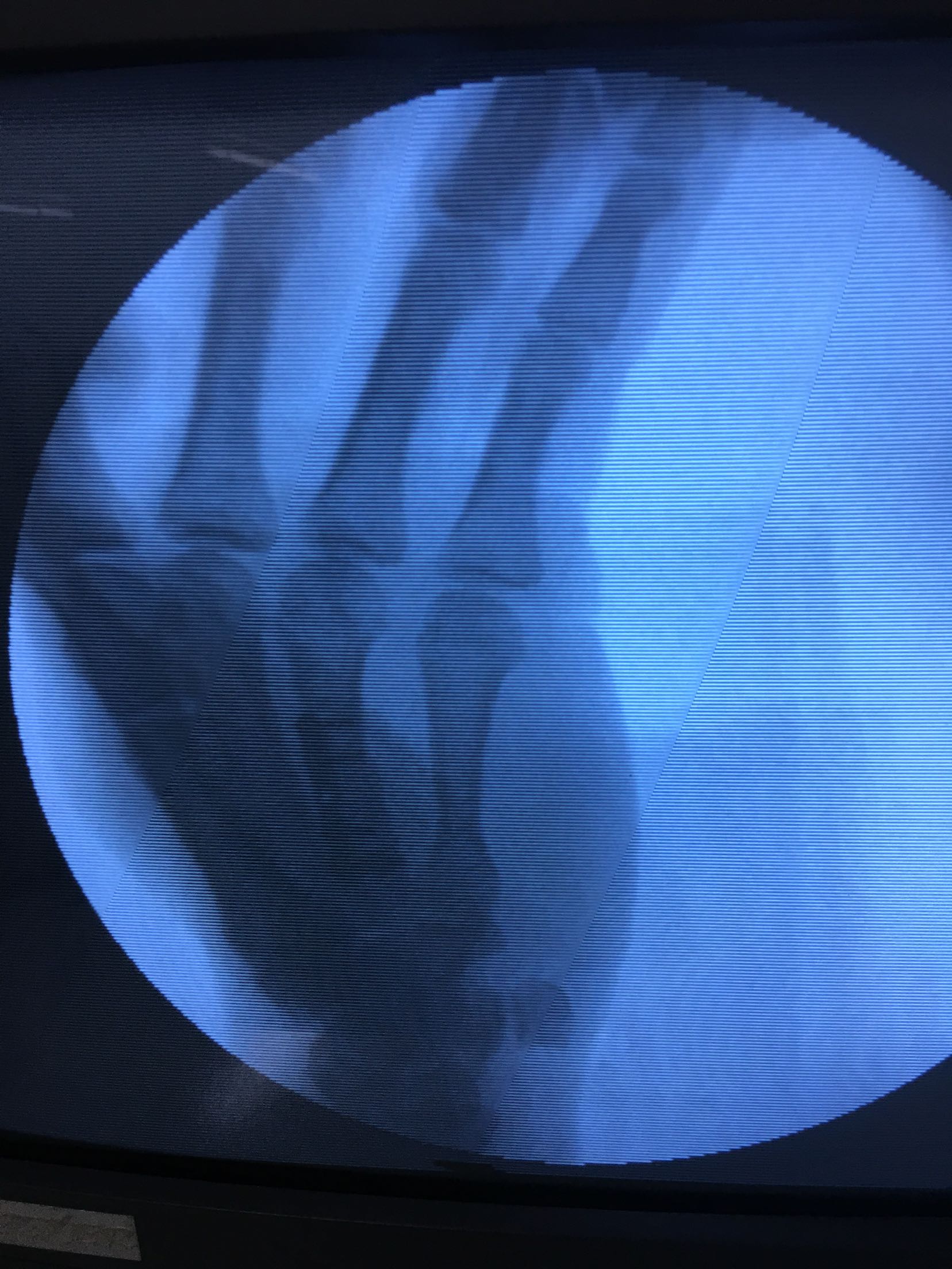 完善检查,在臂丛麻醉下行切复内固定术,术后抗炎,消肿止痛处理。