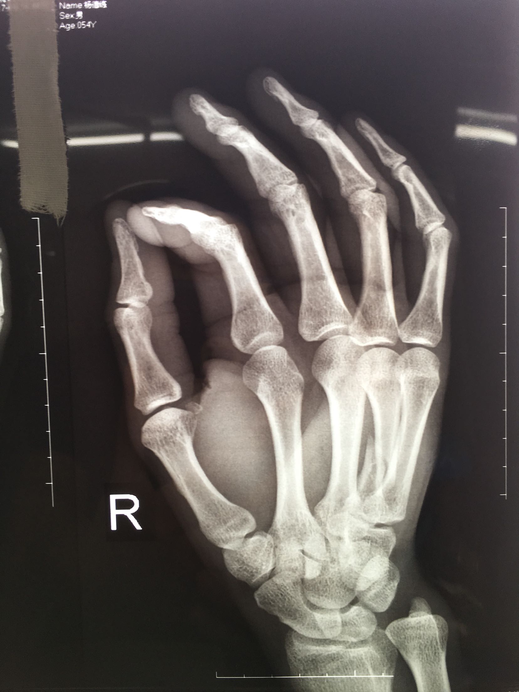 患者,男,52岁,摔伤后右手肿痛,活动受限4小时入院。