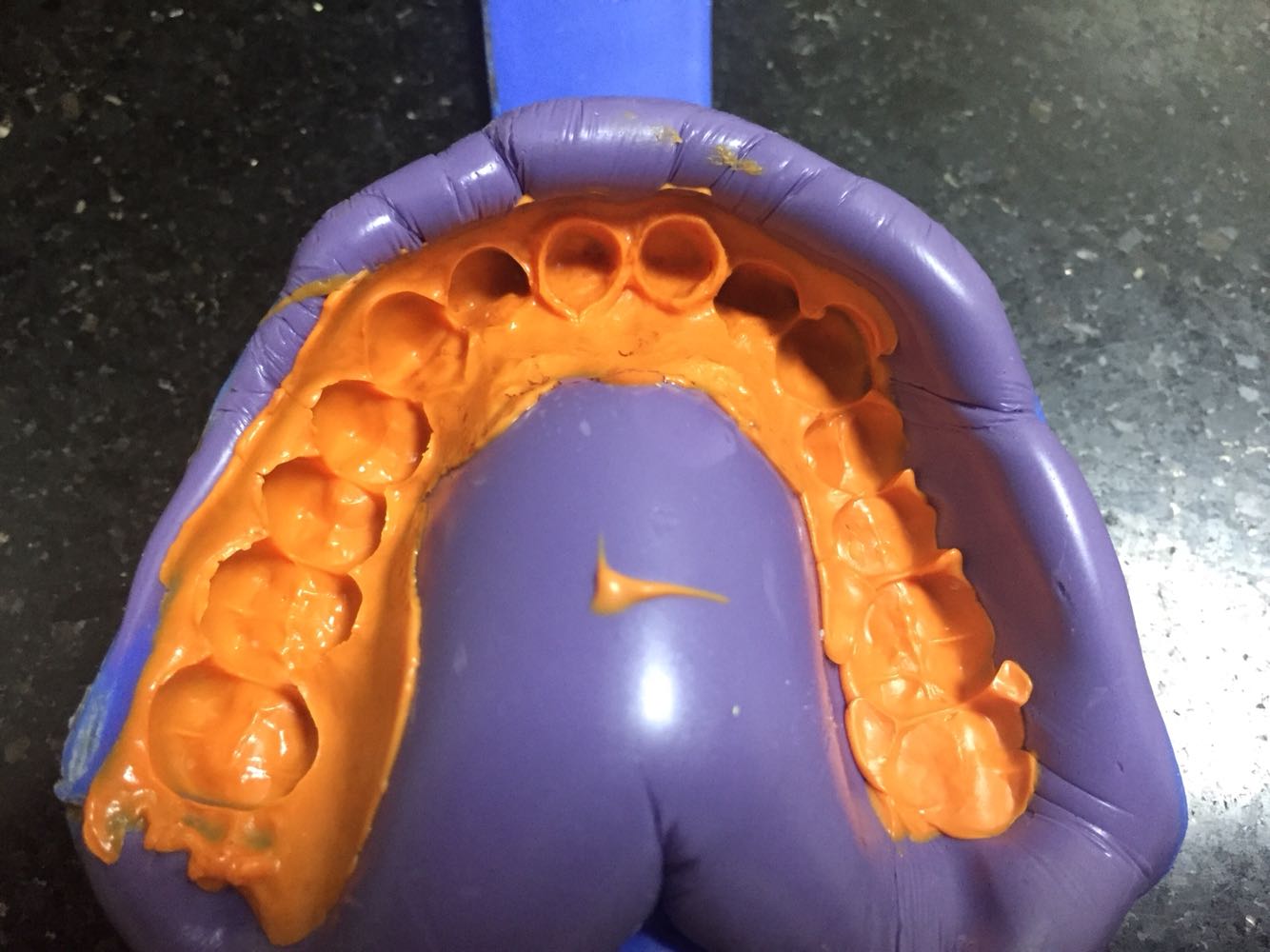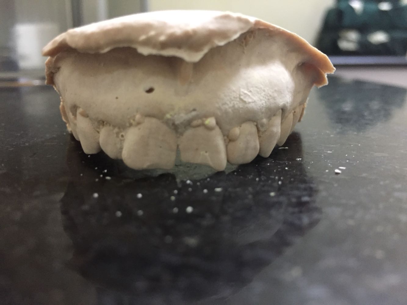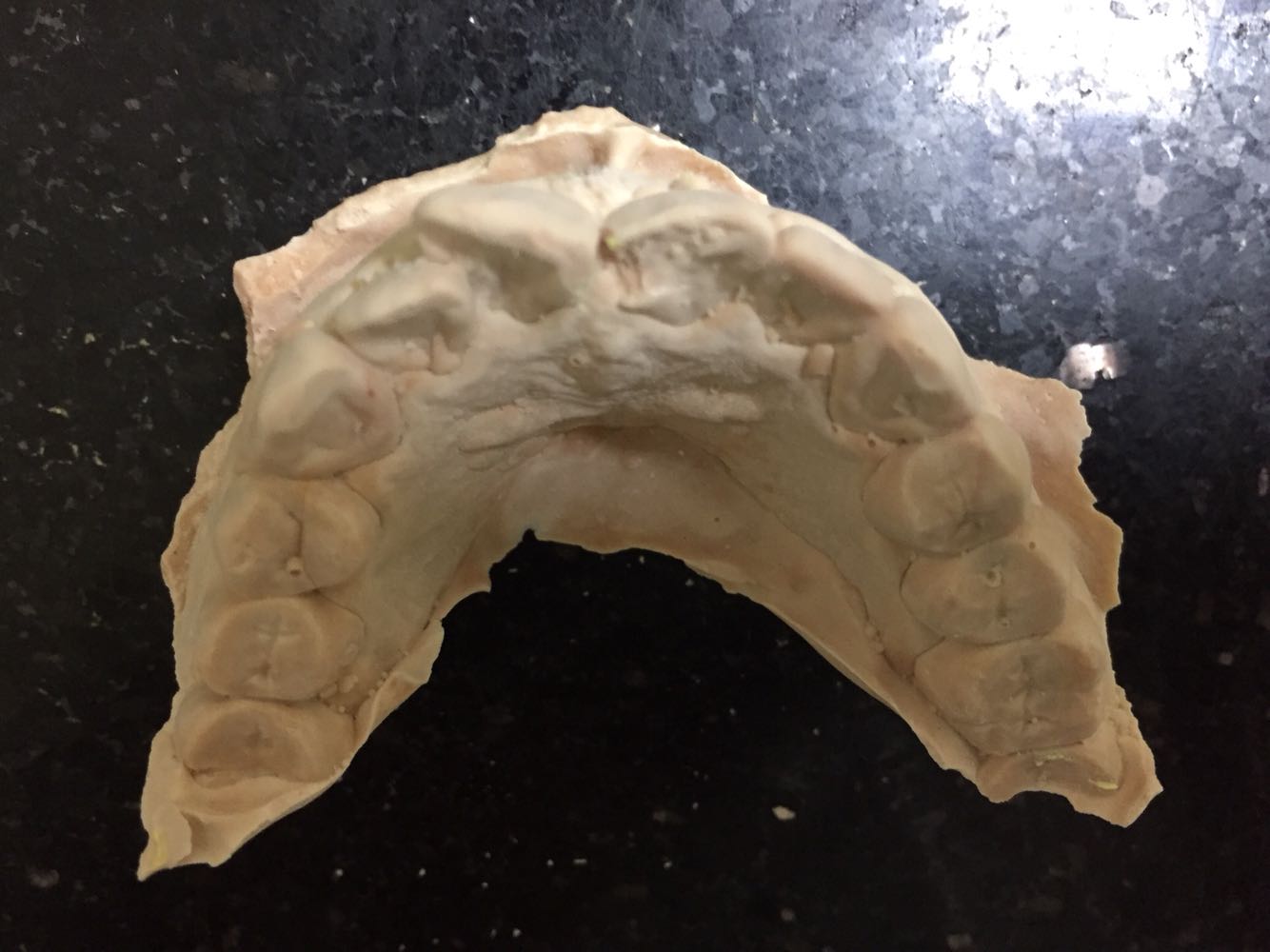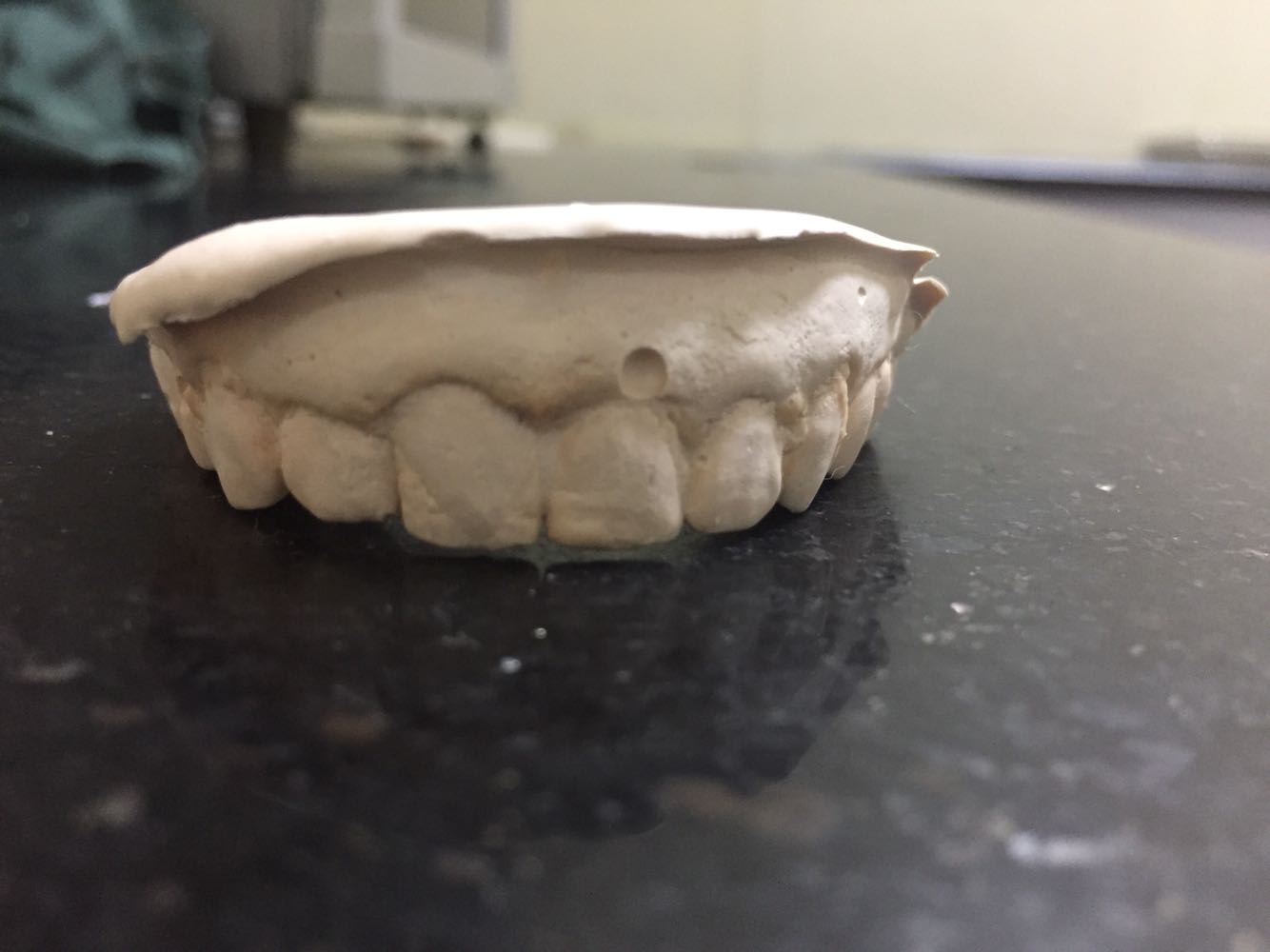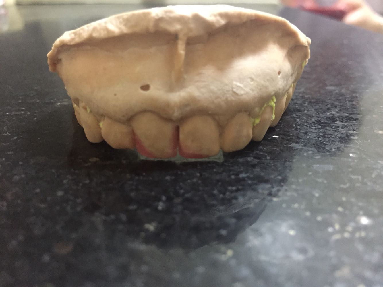 21牙髓坏死伴舌侧缺损 21RCT,21纤维桩。11,21全瓷冠修复。 术前告知患者11预备中露髓后行RCT。 一诊,术前取模型
