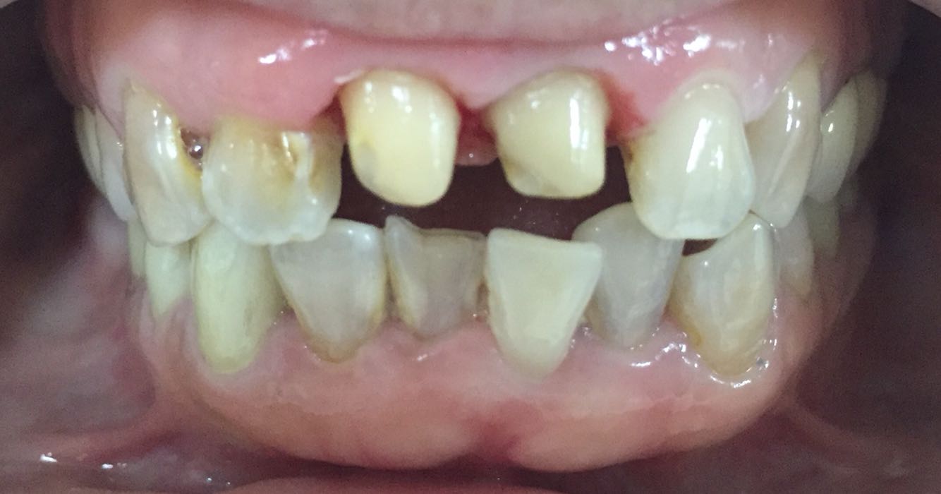 11远中扭转约40度。12,13近中邻面深龋,21近中舌侧大面积龋损,冷诊,叩诊阴性