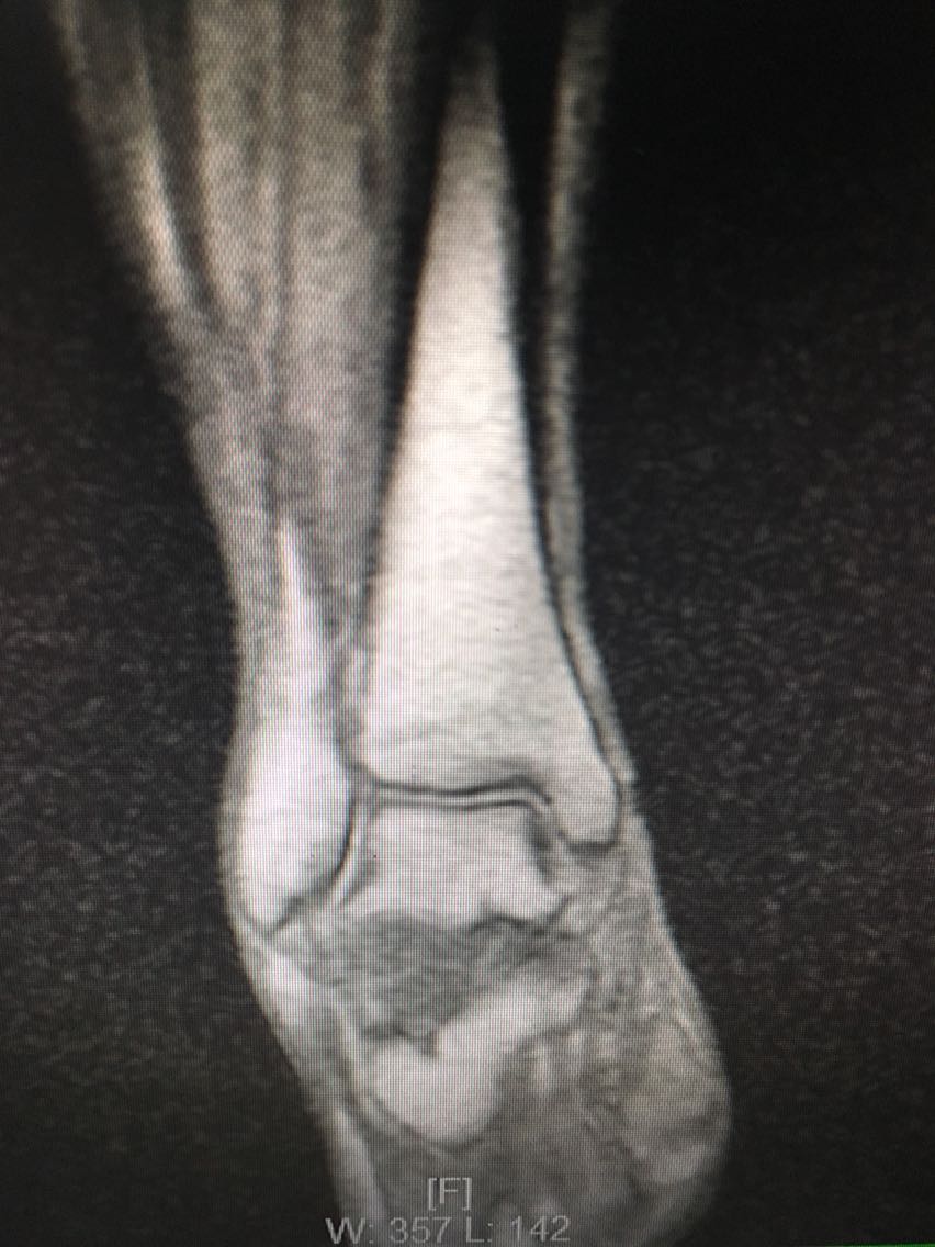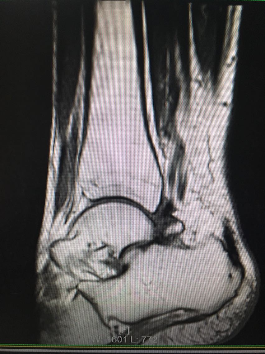 主诉:反复右侧踝关节扭伤3年余。 病史:患者F/60,自述3年前扭伤右足踝,未予以重视及治疗,后反复出现右侧踝关节扭伤,目前自觉右踝松弛,不能做剧烈运动,局部无明显疼痛。