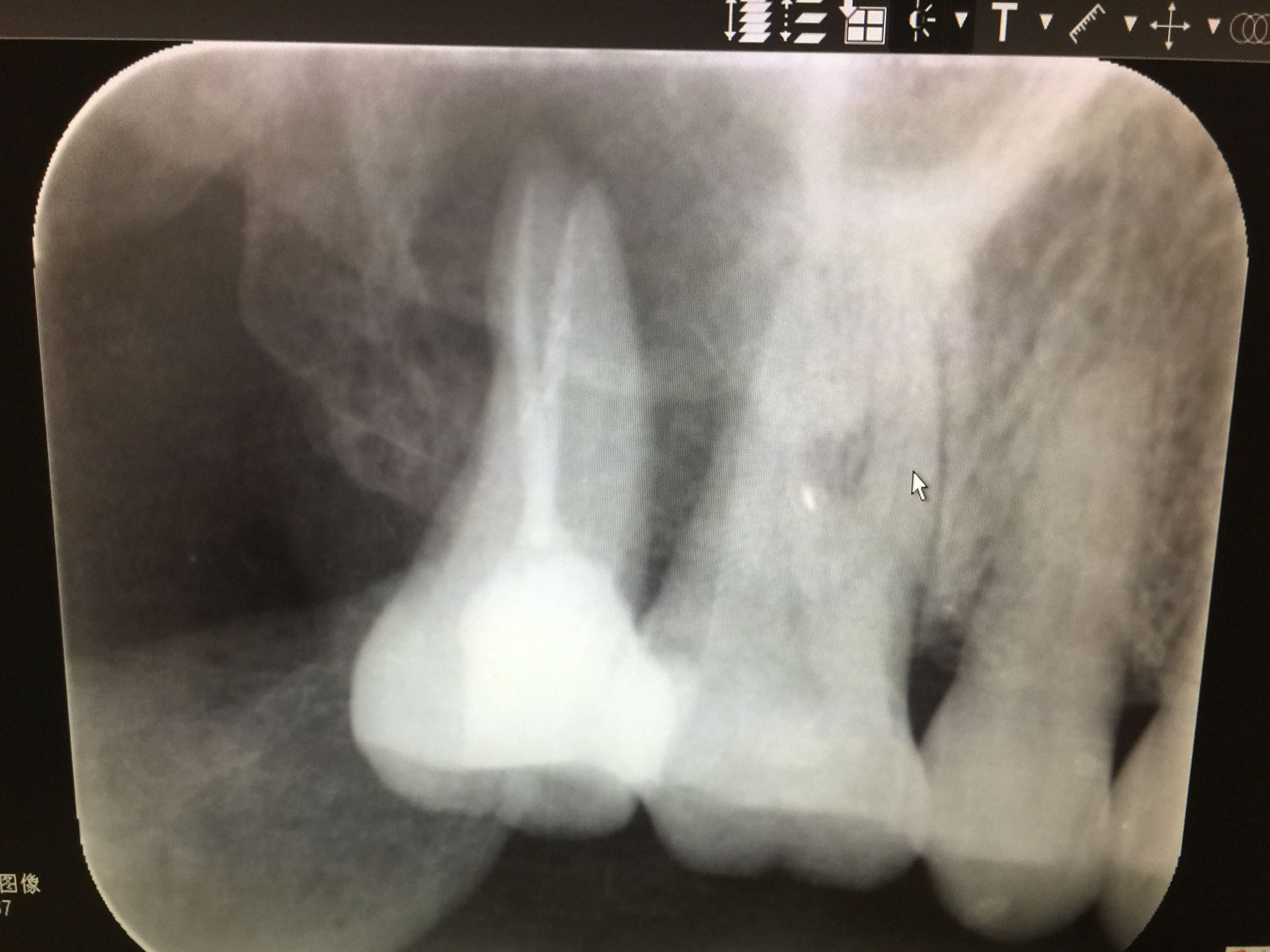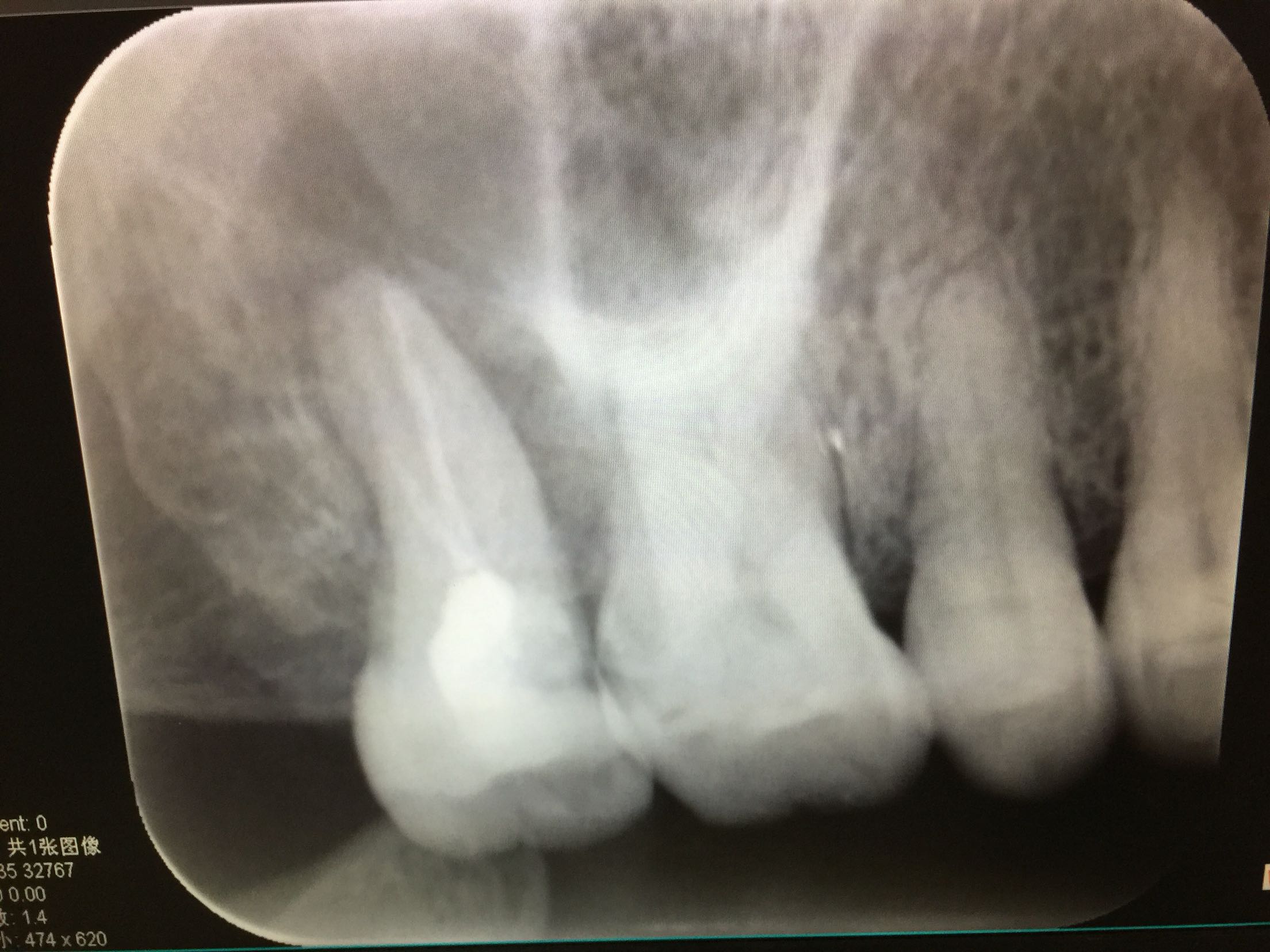 患者,男,38岁。右上后牙咬合痛1月。 患者1月前无明显诱因出现右上后牙咬合痛,患者于4年前于外院行“根管治疗”,无系统性,传染性疾病,无药物过敏史。