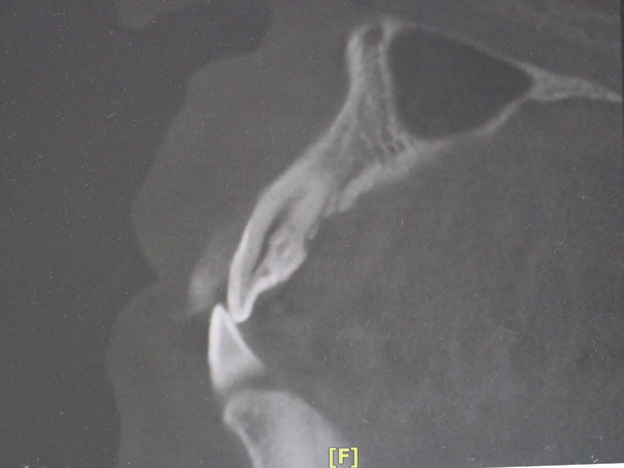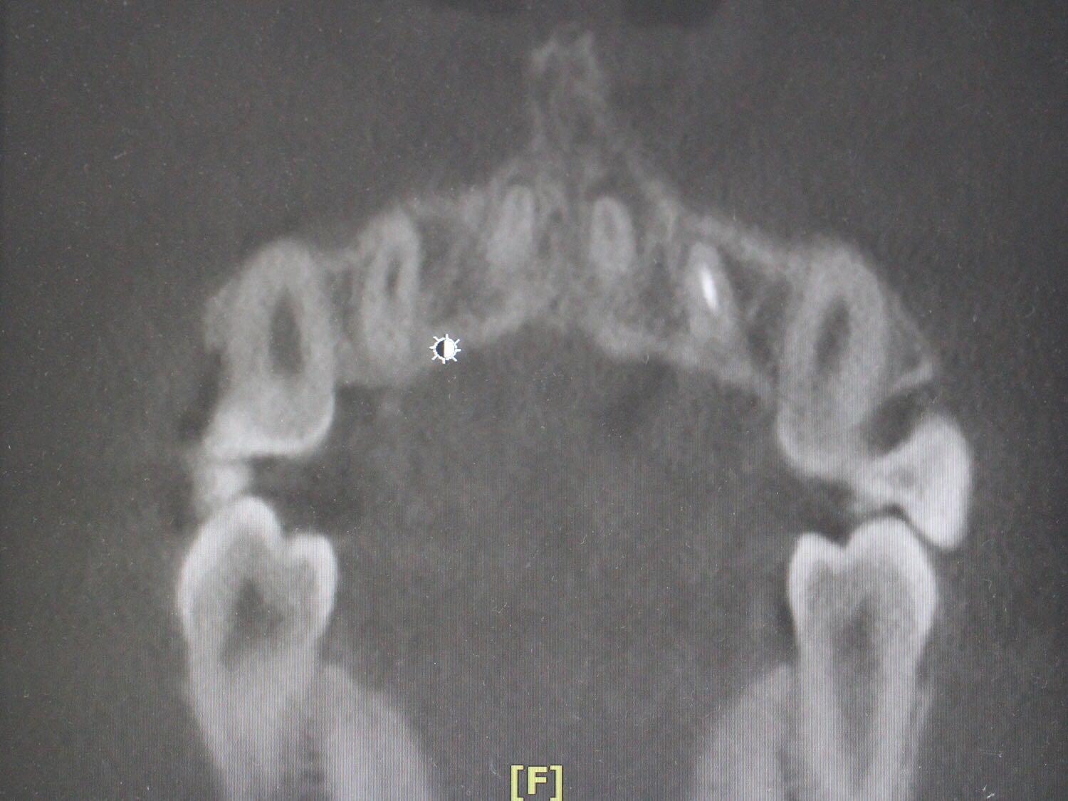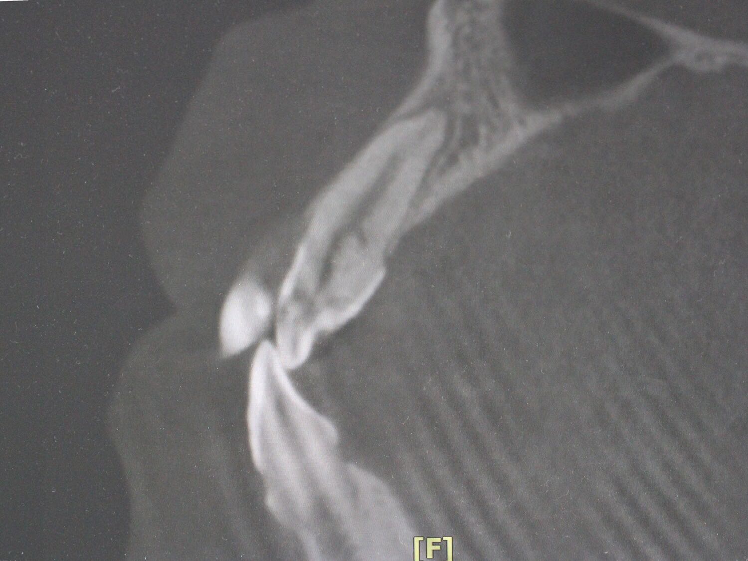 侧切牙是畸形舌侧沟的好发牙位 釉质发生卷曲 一定程度后 可以形成牙中牙 该部位容易形成细菌通道造成根周的感染 治疗效果欠佳 在完善根管治疗后 应长期随访 必要时行外科手术 如果仍不能有效控制感染 则考虑拔牙