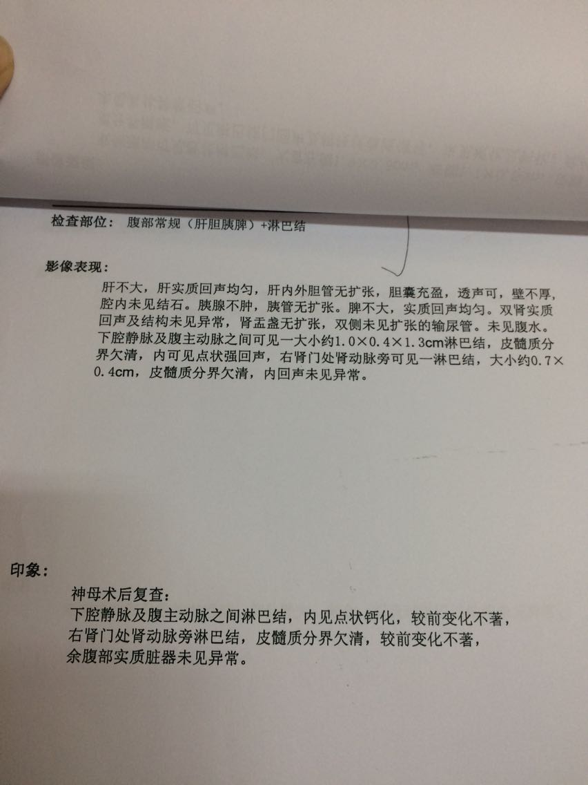 查体:T36.5 P120次/分 R24次/分 BP未测,患儿被抱入病房,意识清,发育正常,营养一般。查体合作,全身皮肤黏膜无黄染,头颅五官大小无畸形,双瞳孔等大等圆,直径约3mm,对光反射灵敏,睑结膜略苍白,巩膜无黄染,口唇苍白,右眼视物不清,颈软,胸廓对称无畸形,双肺呼吸动度一致,双肺呼吸音清,未闻及干湿啰音,心率120次/分,律齐,各瓣膜听诊区未闻及杂音,腹软,无压痛、反跳痛、肌紧张,肝脾肋下未触及,肠鸣音3次/分。四肢无浮肿。 辅助检查:腹部超声2017年12月13日