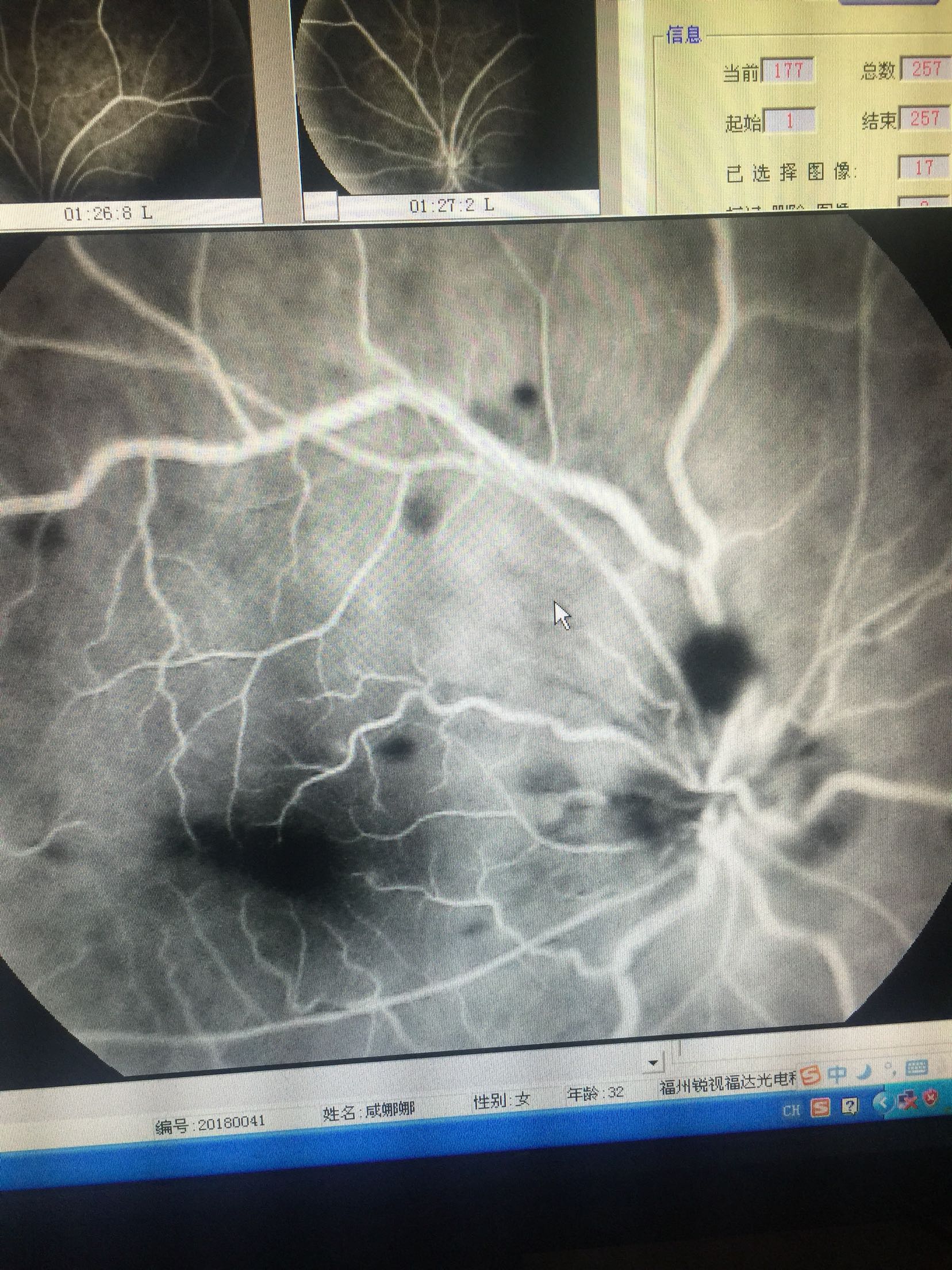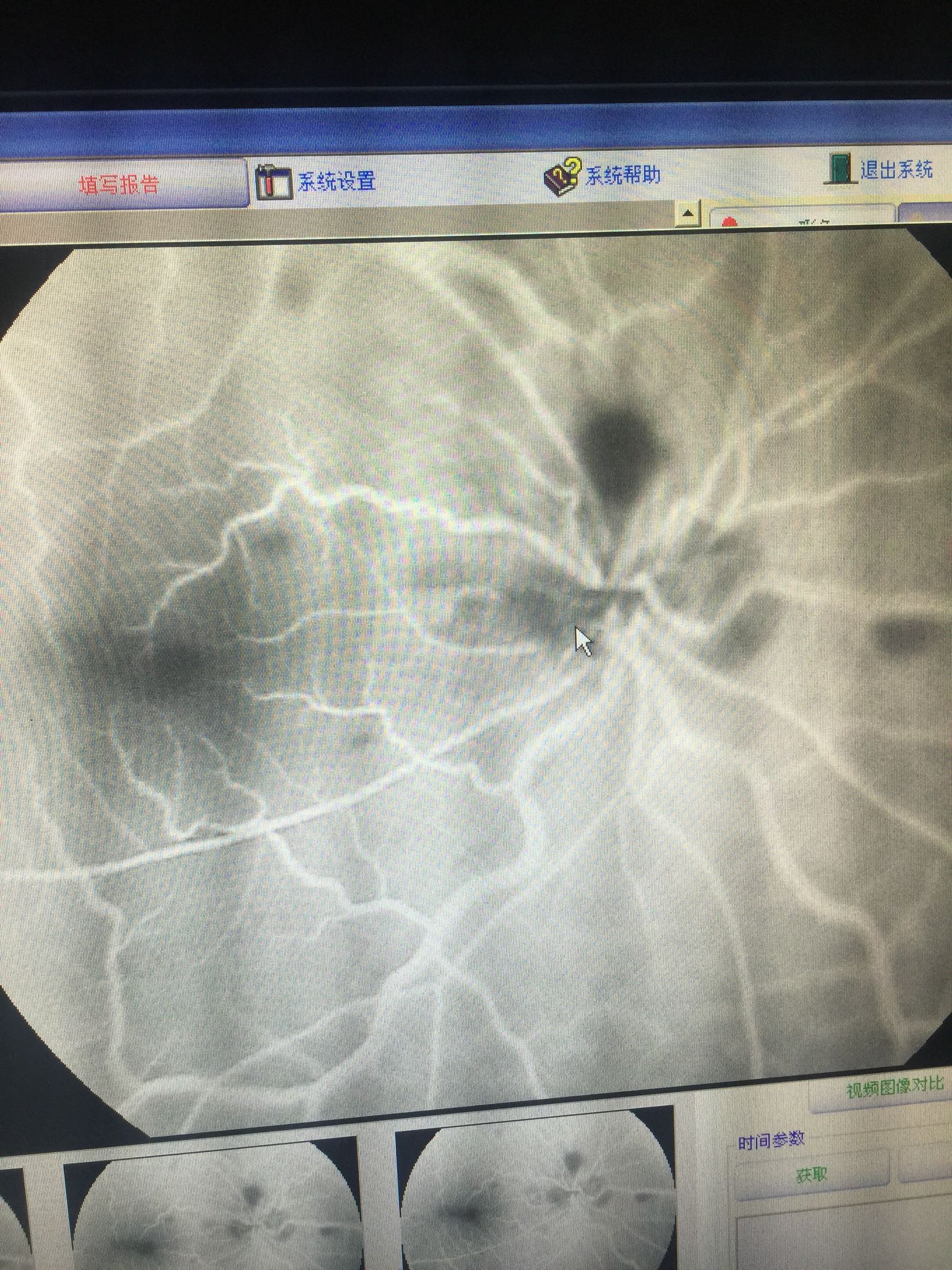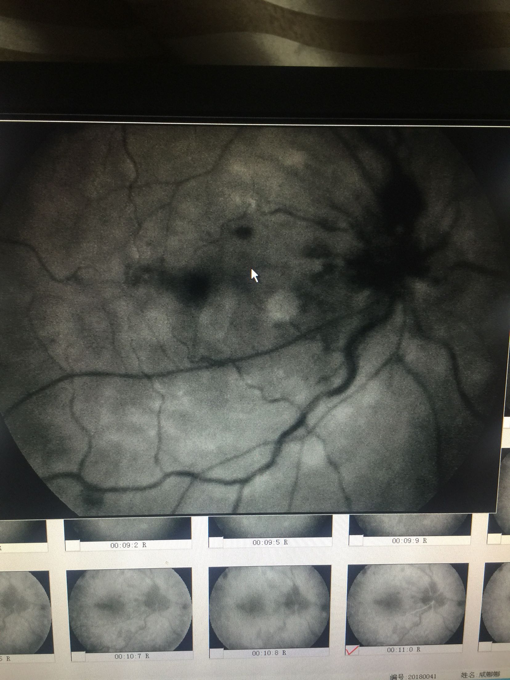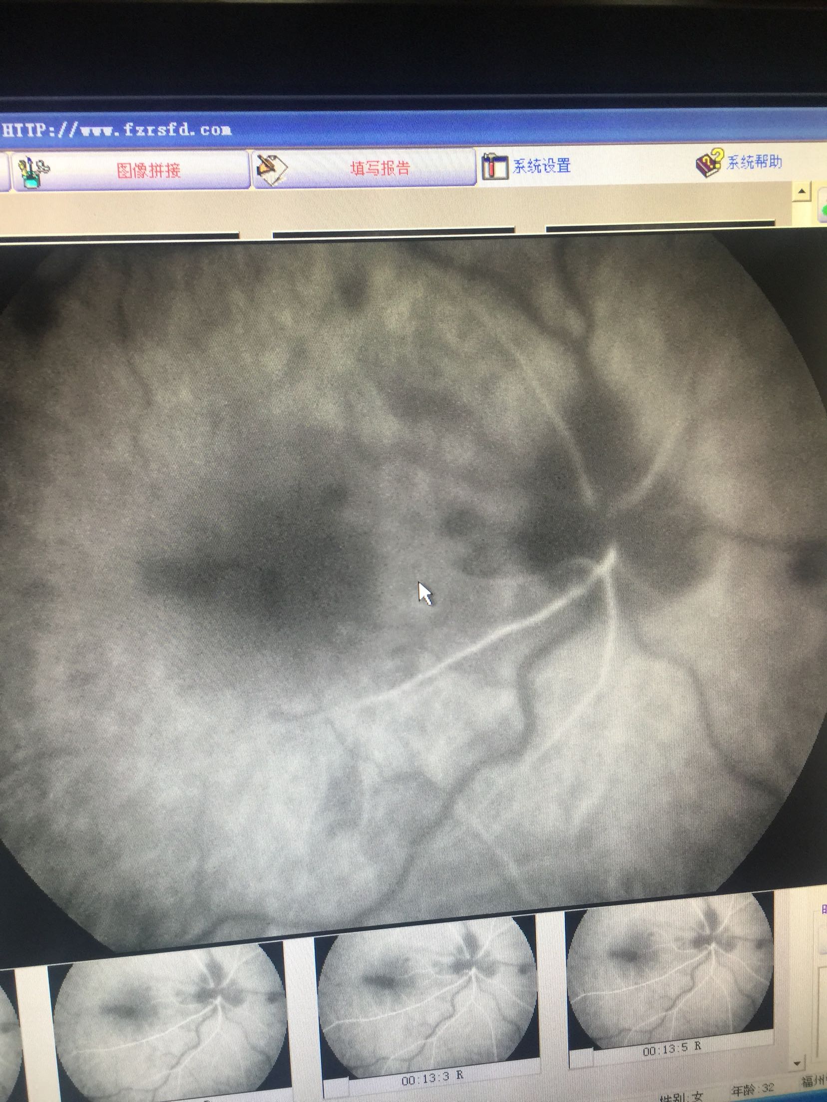 右眼突发性视物不清,4天, 既往史:无 过敏史:无