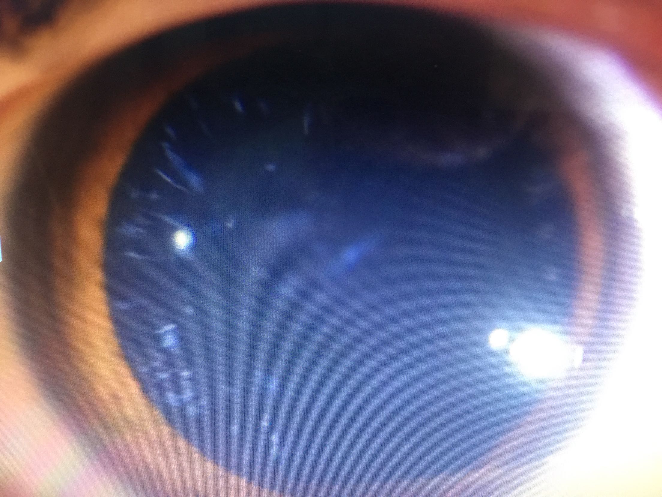 右眼1.0 左眼0.5 双眼睑无水肿,结膜轻度充血,角膜透明,前房中深,瞳孔正大等圆,虹膜纹理清,晶体呈雪花样浑浊,眼底未见明显异常, 眼压:20/19 验光 OD 1.0 OS 0.5 1.25DC*90=1.0 B超:未见明显异常