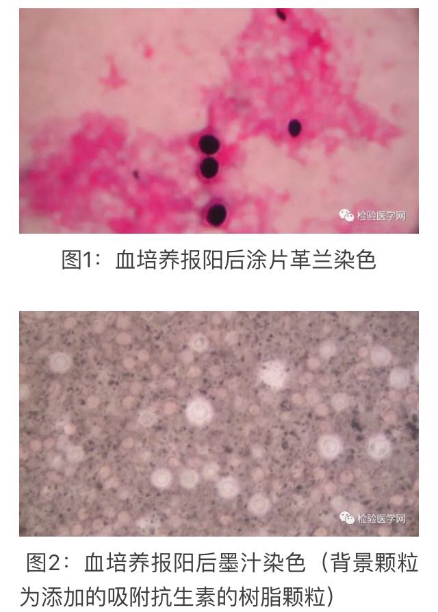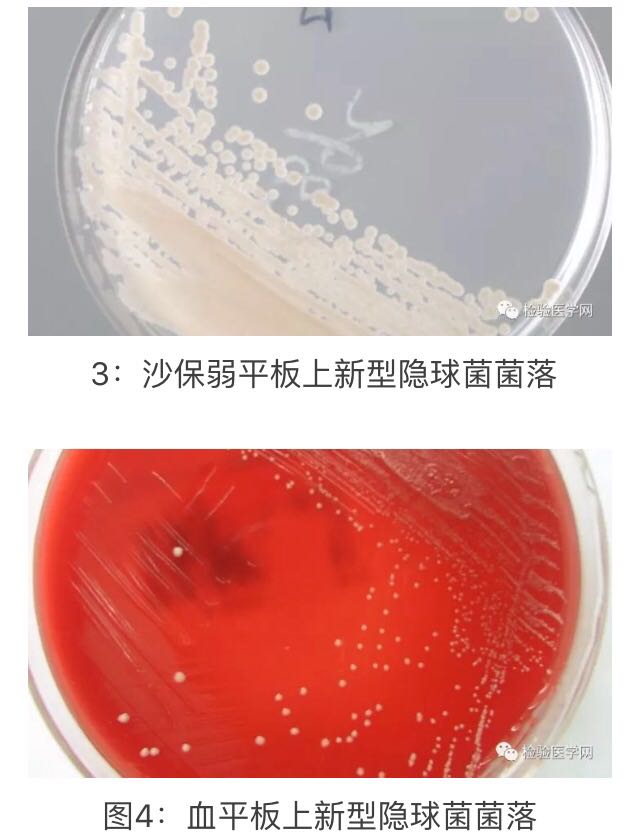 入院时抽血培养,培养报阳后,涂片革兰染色提示真菌孢子,周边有着色不佳的荚膜(图1),墨汁涂片提示是隐球菌(图2)。转沙保弱平板生长奶油样微黄菌落(图3),VITEK2c鉴定为新型隐球菌。